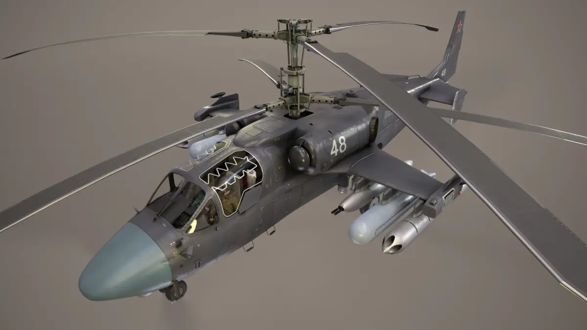Realistic animated 3d model of Kamov Ka-52 Alligator Dark livery (Complex Animation)
