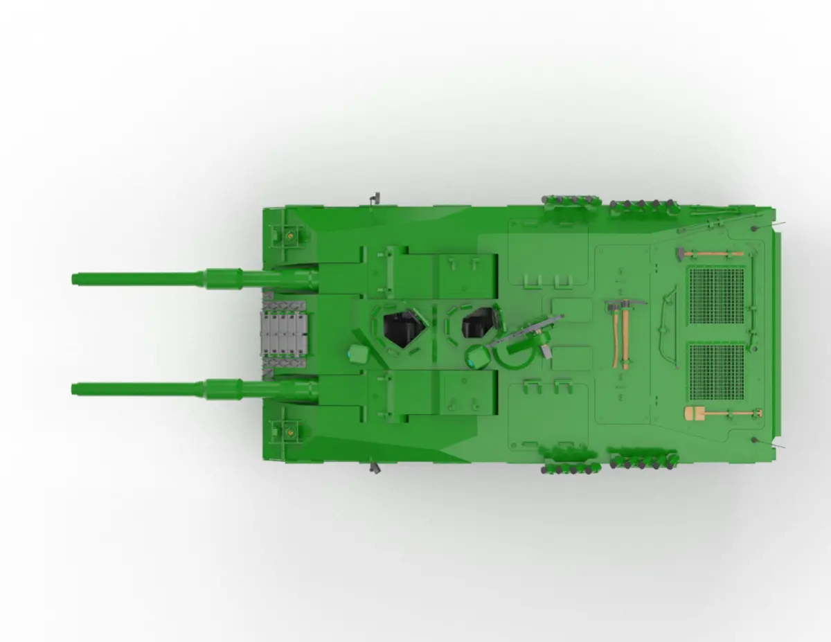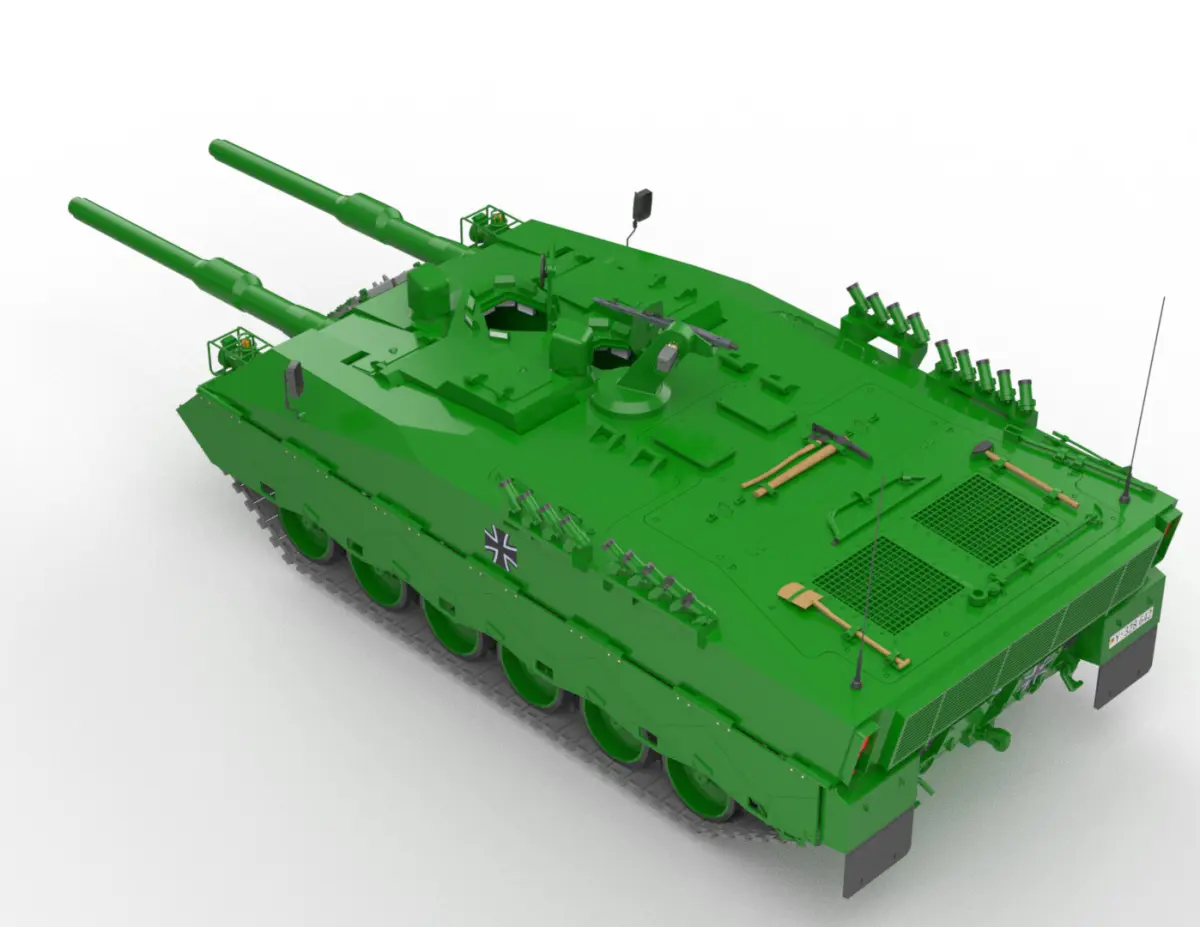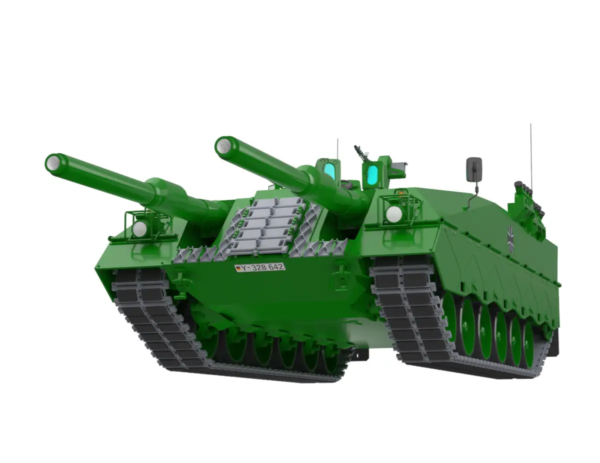 The main battle tank 3 programme was an experimental development from the 1970s, in which an advanced casemate tank concept with two cannons was tested instead of the turret tank concept. The experimental vehicles were, for example, the VT1-1 and VT1-2. The variant here was another design that was developed in parallel to the Leopard 2 AV or the Leopard 2 flat turret concept and, apart from the same chassis components, drive and RH120 gun, also had a remote-controlled MG3 mount (remote-controlled weapon station).