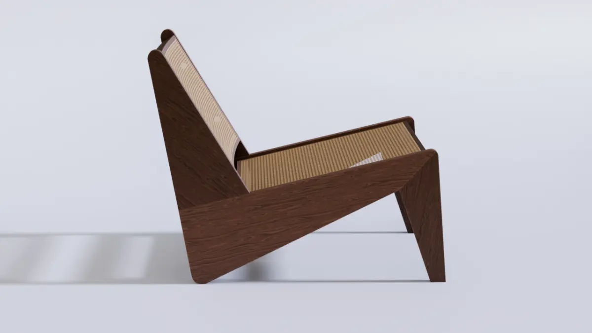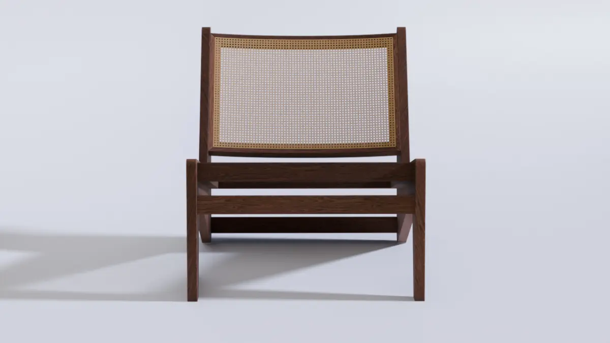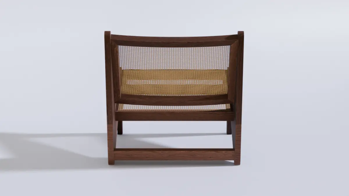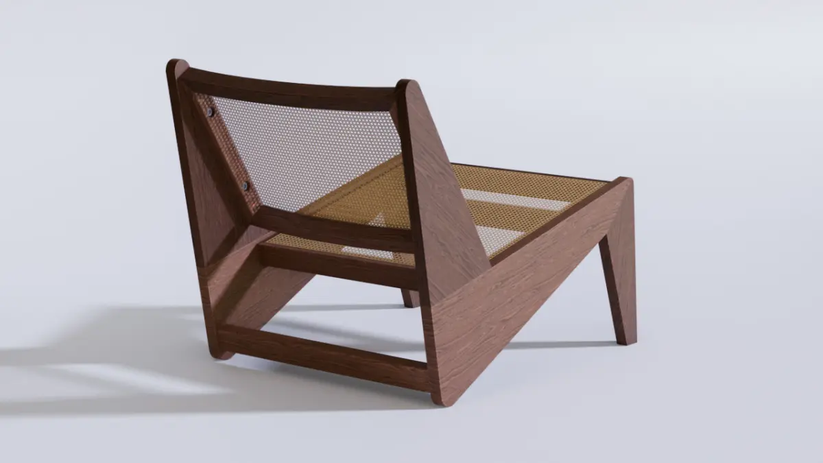 This is a 3D model of the famous Kangaroo armchair. The model has PBR baked textures and was modeled in poligon mesh method. Perfect for interior renders in closeups shots.The Kangaroo chair, created by Pierre Jeanneret, is an iconic piece of modernist design, developed in the 1950s as part of the furniture for Chandigarh, India, an urban project led by his cousin, Le Corbusier. Jeanneret, who was responsible for much of the furniture in this endeavor, aimed to combine functionality, simplicity, and the use of local materials, reflecting both European modernist aesthetics and Indian artisanal traditions.The Kangaroo chair is celebrated for its timeless appearance and the harmony between form and function. The combination of warm wood with the woven cane creates a visual contrast that is both sophisticated and unpretentious. Today, it is considered a mid-century design icon and is reproduced by various brands, such as Cassina, which officially reissued it under the name Hommage à Pierre Jeanneret. Original pieces are highly sought after in the antiques market, often fetching high prices at auctions.The most striking feature is the Z shape of the chair’s sides, created by three flat elements that connect fluidly, giving it a sculptural and elegant appearance.It is a low chair, with the seat close to the ground, reflecting an Asian cultural influence where sitting closer to the floor is common.The lines are clean and geometric, without unnecessary ornamentation, adhering to modernist principles.This chair was originally designed for the General Hospital Hall and private residences in Chandigarh, as part of a series of furniture Jeanneret created to furnish the planned city.The design reflects Jeanneret’s philosophy of using local materials and artisanal techniques, adapting Western modernism to the Indian context.The chair is made of solid wood, typically teak or oak, which provides sturdiness and a natural look.The seat and backrest are crafted from woven cane (or rattan), a lightweight and breathable material, ideal for India’s hot climate.