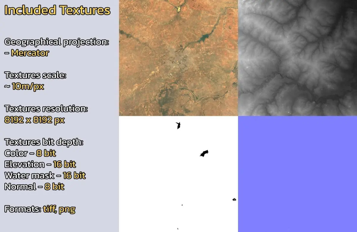 Warning: minor clouds/artifacts may be present on the diffuse color satellite texture due to the nature of the dataset. Check product images.