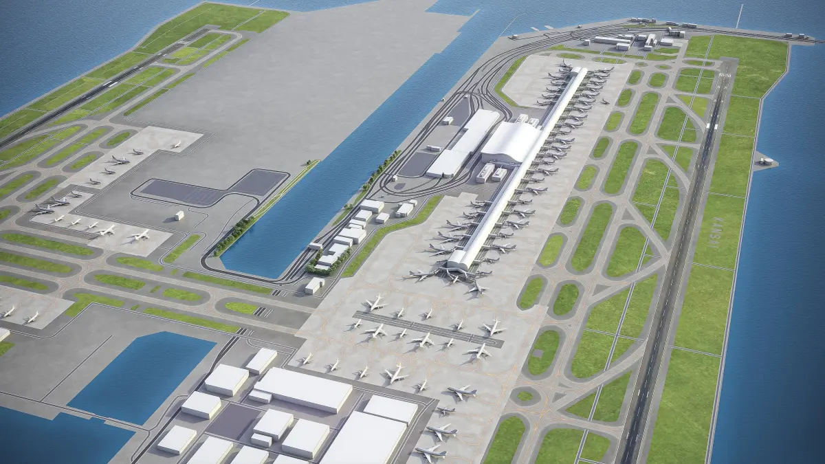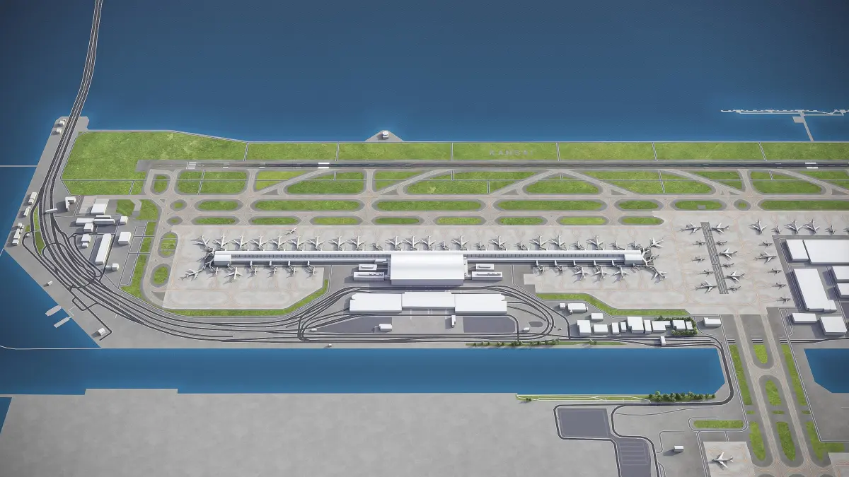 This is exact and accurate to-scale 3D model of Kansai International Airport (KIX) and its surrounding area based on GIS data (June 2020)