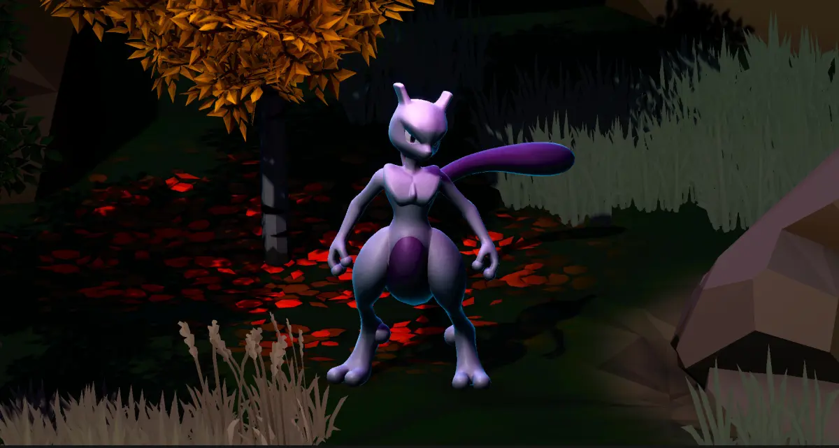 Mewtwo: The powerful psychic clone, with iconic poses and attack animations.
