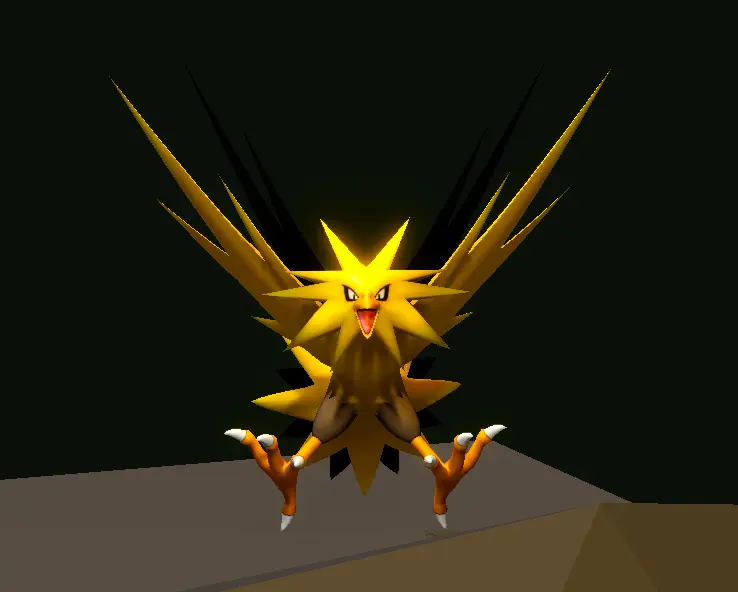 Zapdos: The fierce electric bird, with agile movements and lightning effects.