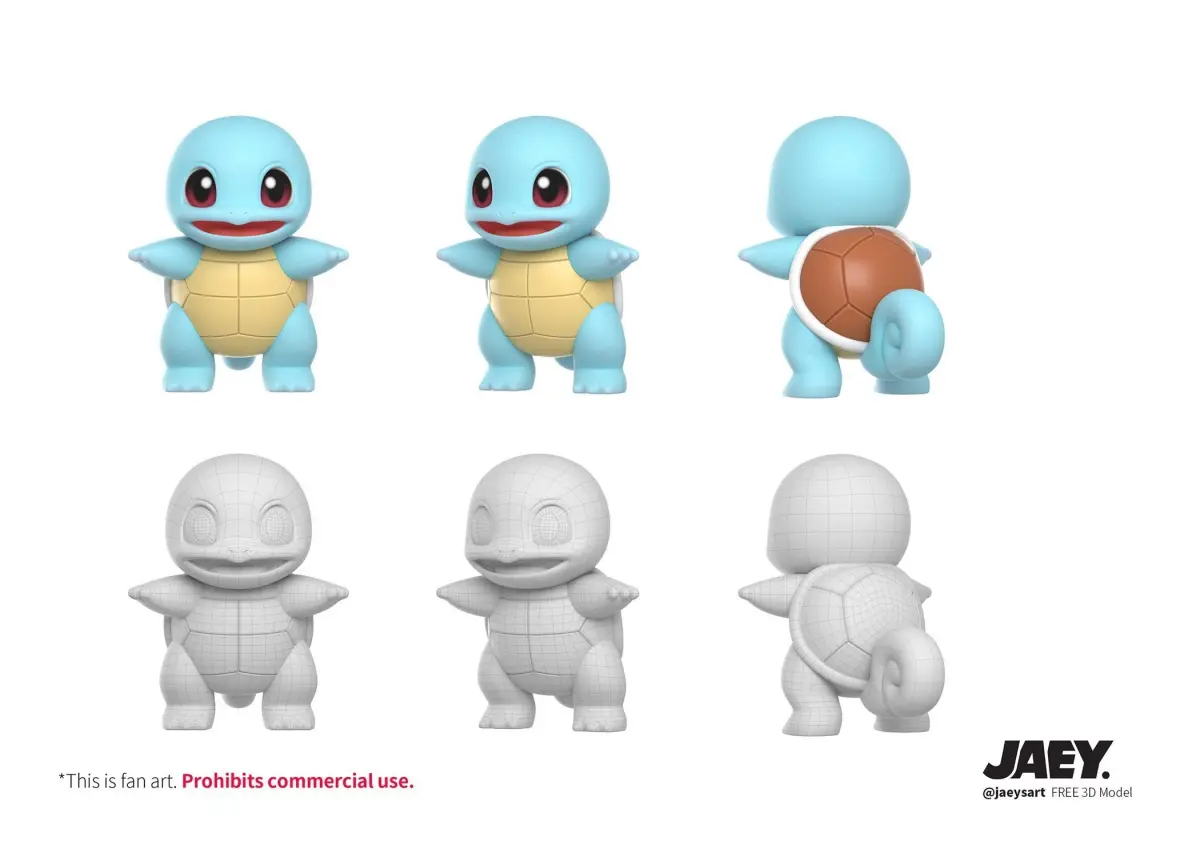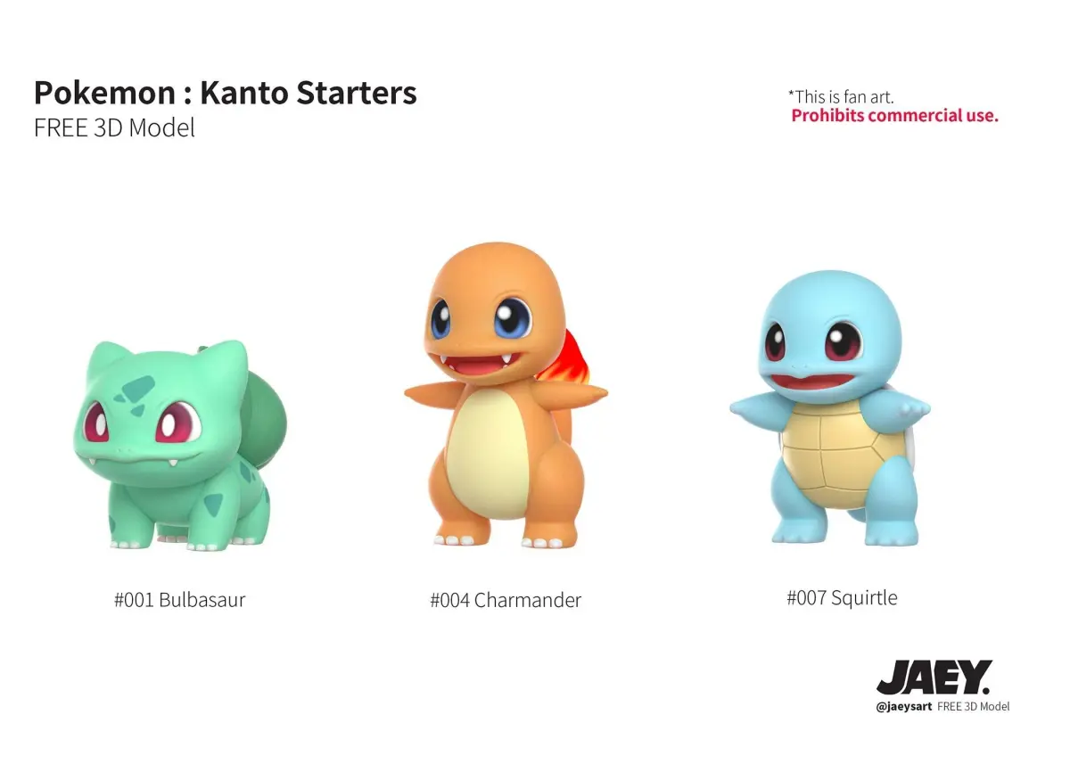 Download Kanto Starters FREE 3D model Free low-poly 3D model