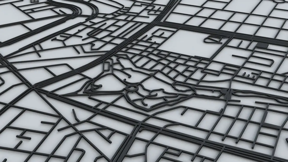 - the model is positioned on a flat surface (road network is on the “floor” - no elevation data included)
