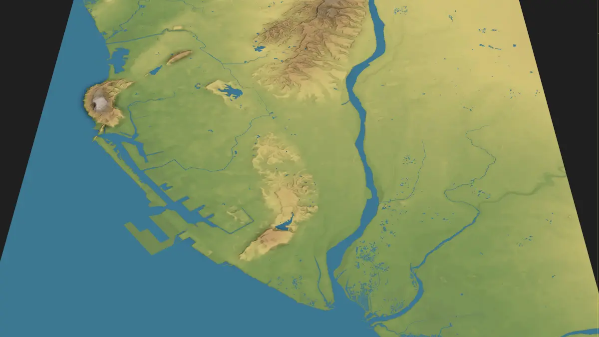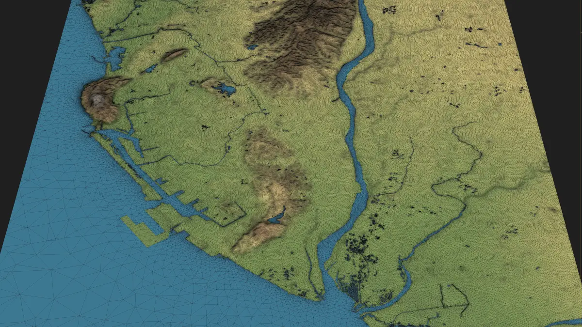 - Separate Land Surface and Water Bodies — Two distinct mesh objects with precise shorelines for realistic water features