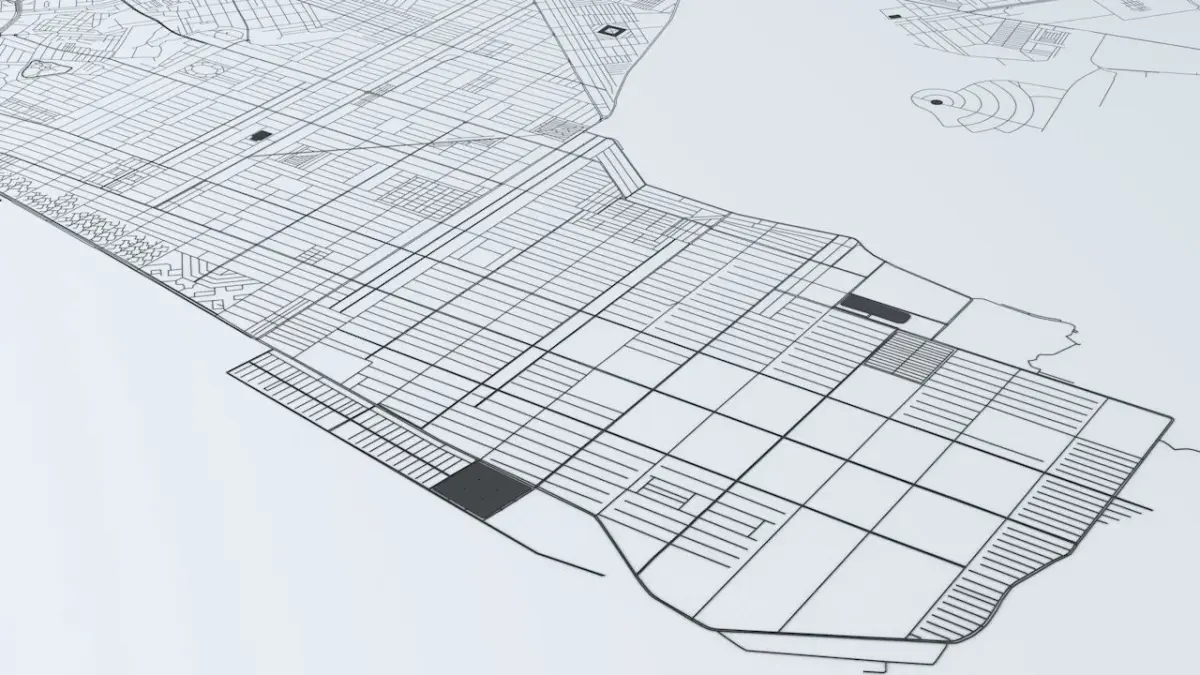 - the model is positioned on a flat surface (road network is on the “floor” - no elevation data included)