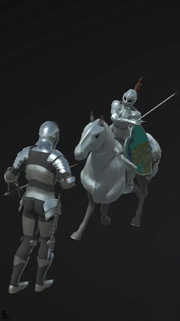 This is a 3d model of Kardia of Rhodes inspired by nisetanaka She has a full set of armor, clothes, and underwear, helmet have emotions default top view , joyful from above , satisfied from below , so I recommend removing unnecessary gear during animation. It has H-poly and L-poly versions. I will soon post her equipment: The Flamberg bloody rose sword, a shield with a peacock pattern, a crossbow with a goat's foot trigger, a mare equipped with heavy armor. Due to the active lifestyle, there are no fat deposits, and wearing extremely heavy armor has led to a very developed leg musculature, as well as developed abdominal and pelvic floor muscles, the arms have been subjected to lower loads, so their musculature is moderately developed. The face has Slavic features, medium-sized lips, small nose, small chin, and taut cheekbones. The oral cavity has been worked out correctly and all 32 teeth are present.medium realistic boobs are elastic and round, due to wearing a corset with breast fixation due to the corset, the waist is thin, which makes an hourglass effect due to the large fit booty.