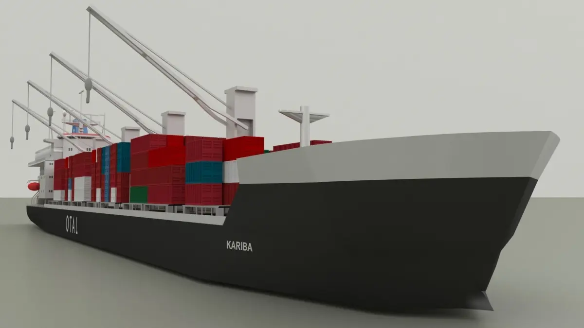 The Kariba is a bult container. In december 2002, this ship collided whit the MV Tricolor causing its inmediate sinking. This model was made with Maya and V-Ray rendering.
