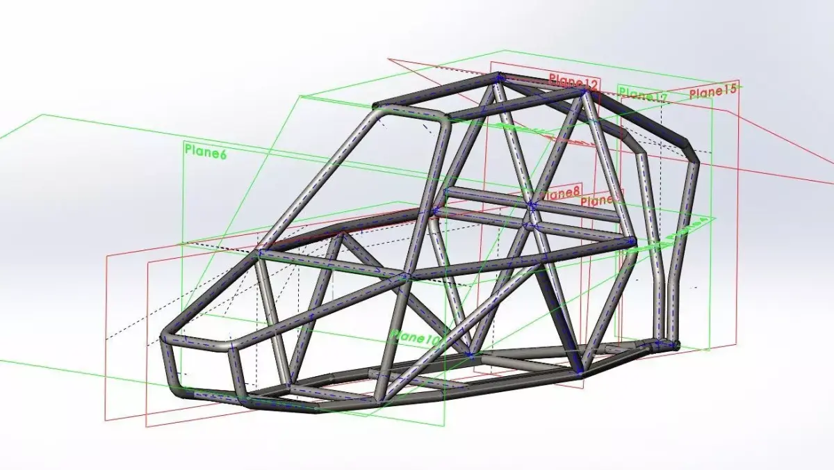 This 3D model represents a detailed Kartcross chassis, fully designed in SolidWorks with realistic geometry and accurate proportions. The model is ideal for engineering projects, mechanical simulations, design visualization, or educational purposes.