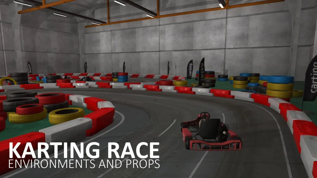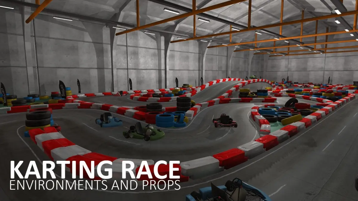 Mixaill studio presents a good solution for your games, VR projects and simulators.Karting race - environments and props is an equipped go-kart track with 3 carts and interior items that will help you save time on implementing your ideas.Pack includes a large set of necessary models:hangartrackkarttireslampflag