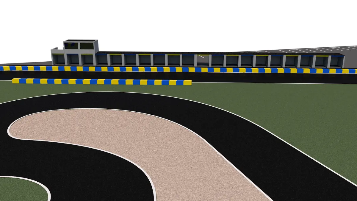 original go-kart track. The track is equipped with vibrators, protective barriers, stands, and control post. The elements are separated and clearly named. Materials are affected by objects or selection . no uv mapping. So you can assign your materials for your favorite rendering engine.