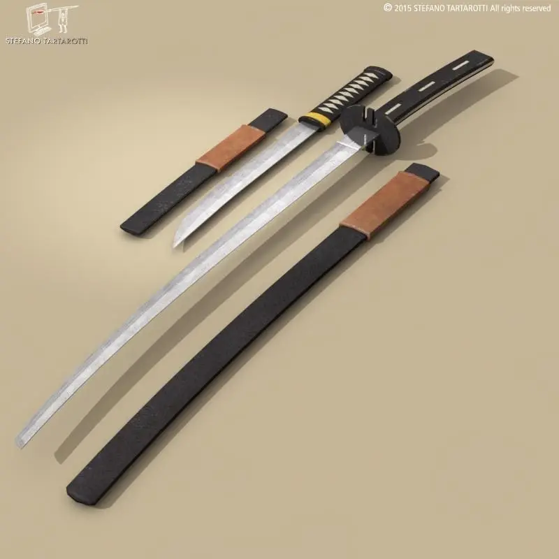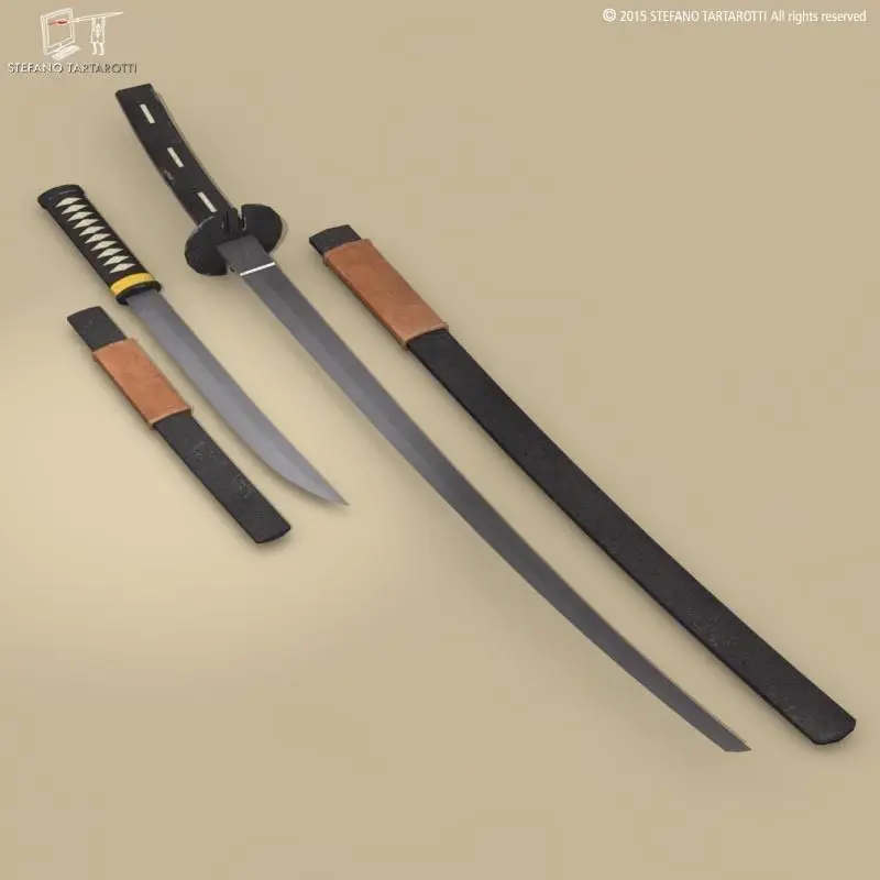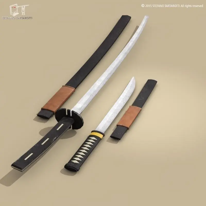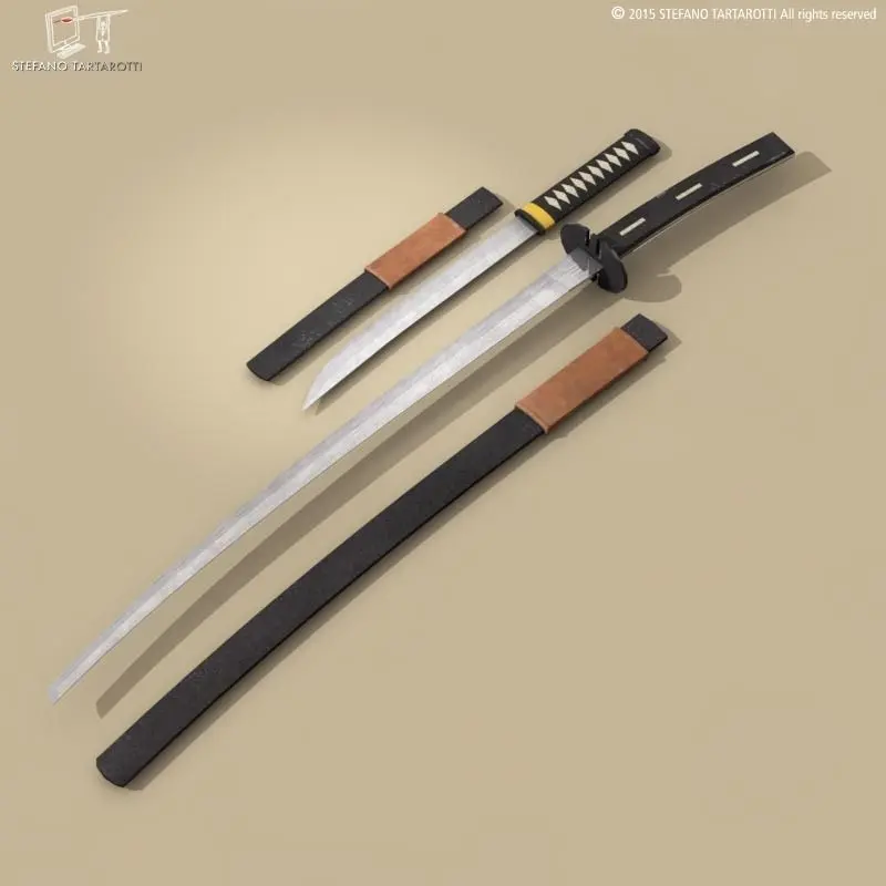 Katana and Wakizashi swords with scabbardsThe model is textured.Made in cinema4d R12. Other formats have textures too. .fbx format is good for importing in 3dstudio max and Maya.Polygons 958Vertices 982If you like the model please rate it.