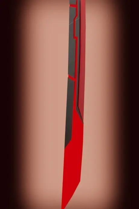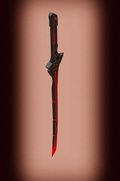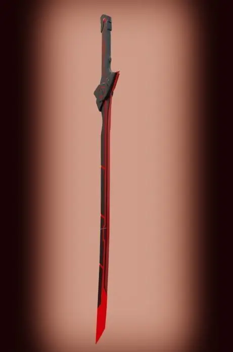 Katana made in the style of cyberpunk, ready to be introduced into the game, made in a gray-red style, the red details are neon, on the handle of the katana there is a red crystal that energizes all weapons, from the introduction of the crystal into the katana, the blades took a shade of red.