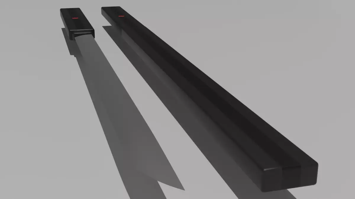 Este modelo 3D representa la icónica katana Kusanagi de Sasuke Uchiha, inspirada en el universo de Naruto. El diseño muestra un estilo minimalista y moderno, con una funda completamente negra de acabado metálico y un distintivo símbolo rojo del clan Uchiha grabado en el centro.