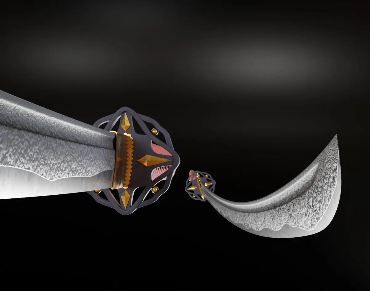 The blade texture is handpainted