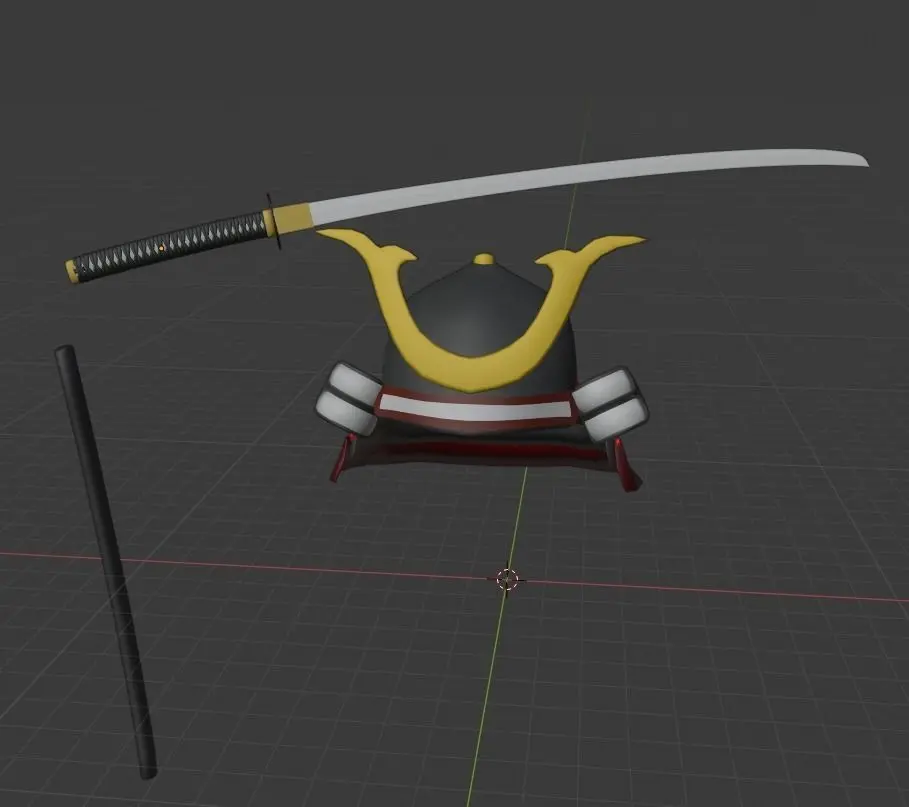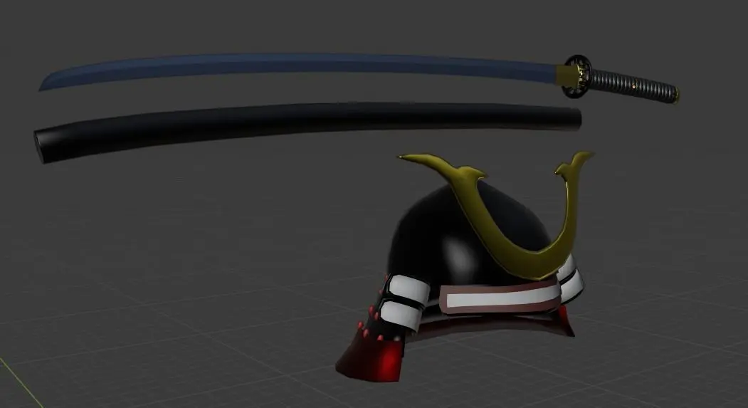 Samurai Kabuto and Katana. Made in blender and will work nicely with low poly models. The Katana blade has a full tang, and the grip is fully wrapped. The guard has a bamboo and bird design. The models have metal texturing but can be changed in blender to whatever you want. If you are looking to work on your texturing skills you can practice unrapping this model and making realistic textures to it. This is a blender file.