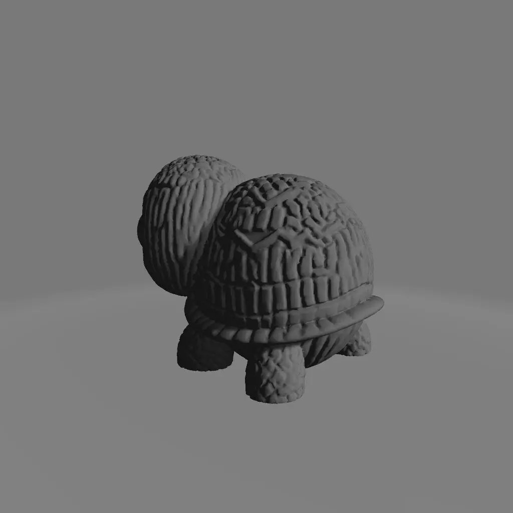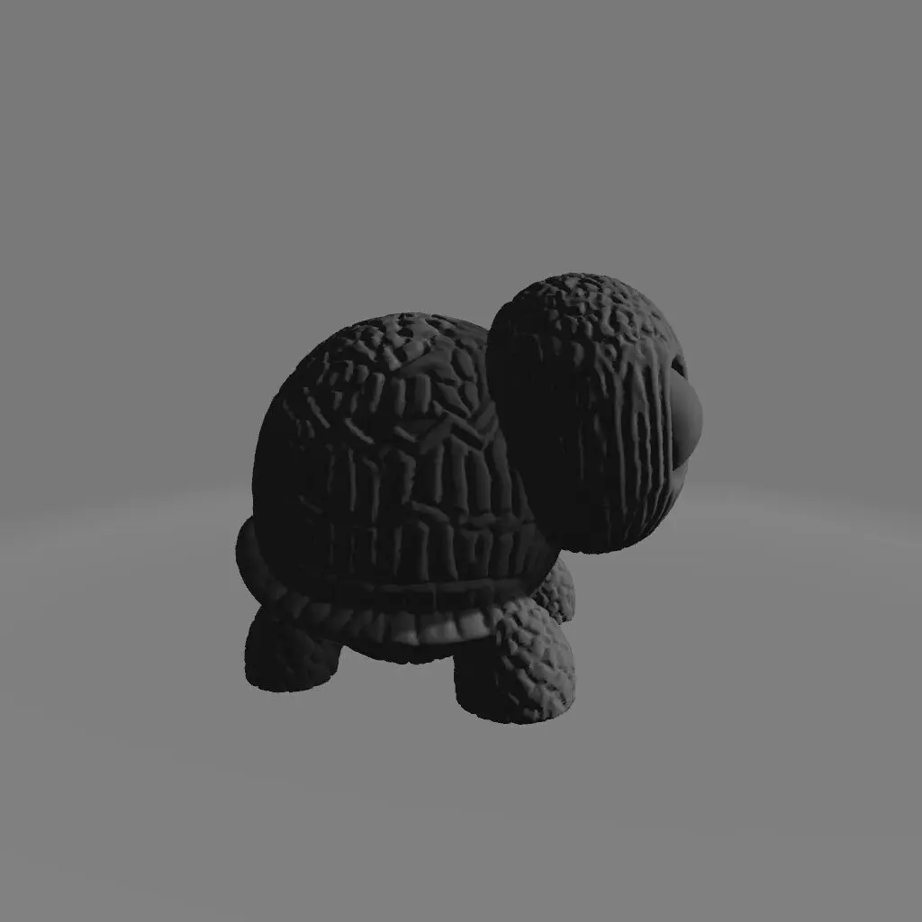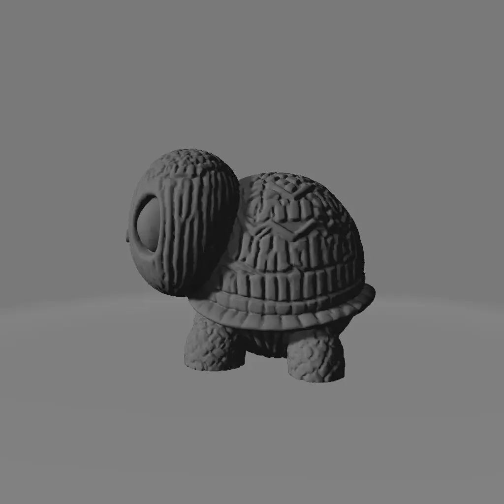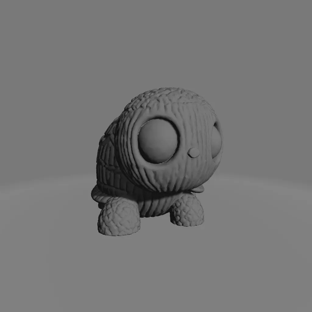 A charming 3D-printed turtle with a playful, kawaii-inspired design. Featuring a meticulously detailed hexagonal shell, this light teal-blue turtle stands on all fours, gazing forward with large, expressive deep purple eyes. Set against a smooth, light pink backdrop, the bright and saturated colors enhance its adorable appeal. Perfect as a decorative piece or a fun collectible