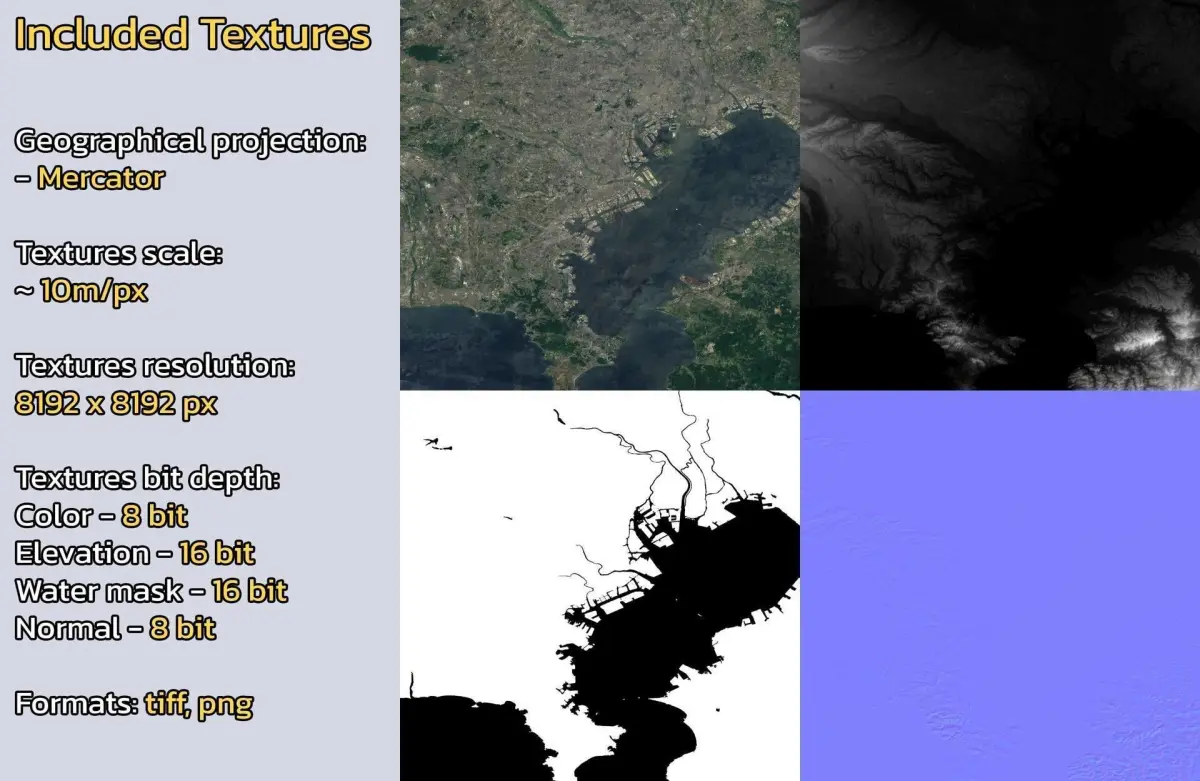 Warning: minor clouds/artifacts may be present on the diffuse color satellite texture due to the nature of the dataset. Check product images.