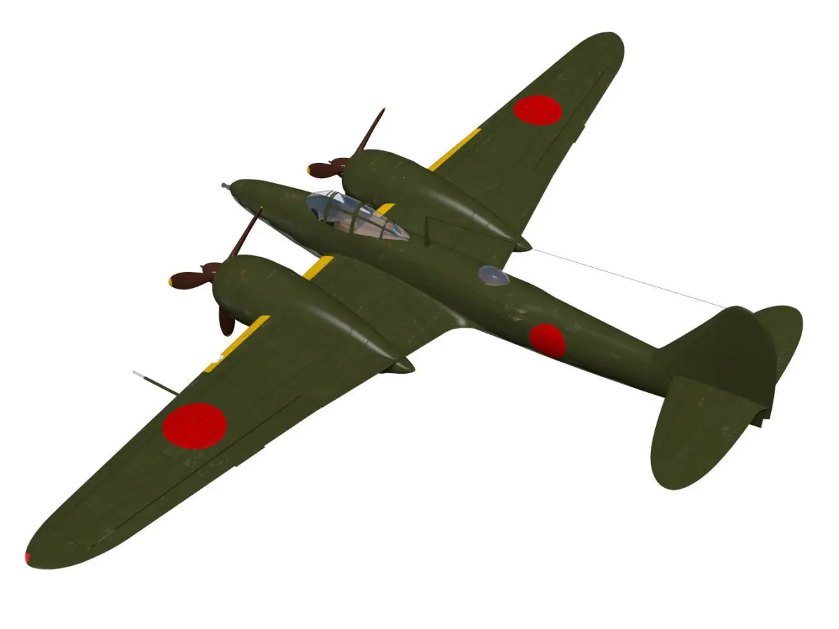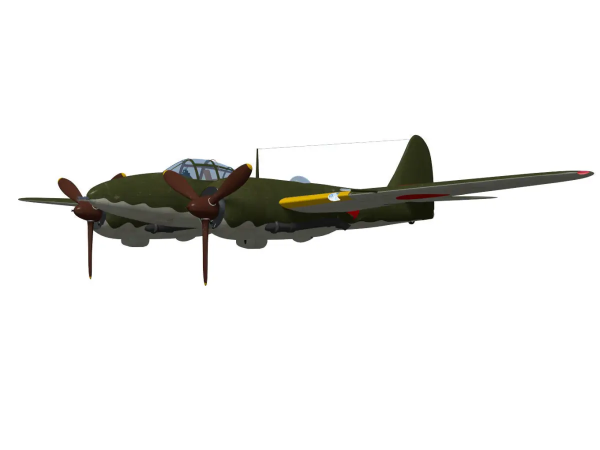 This twin-engine fighter was produced by Kawasaki Aircraft during WW2 at the request of the Japanese Army.The model hei type is a high altitude fighter type with a 30mm machine gun in the nose and a 20mm diagonal gun in the fuselage.The aircraft was destroyed by bombers during the production of the prototype.