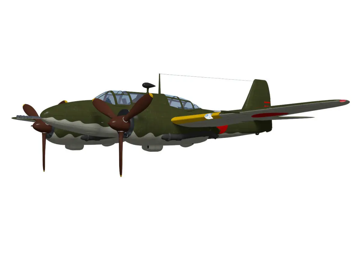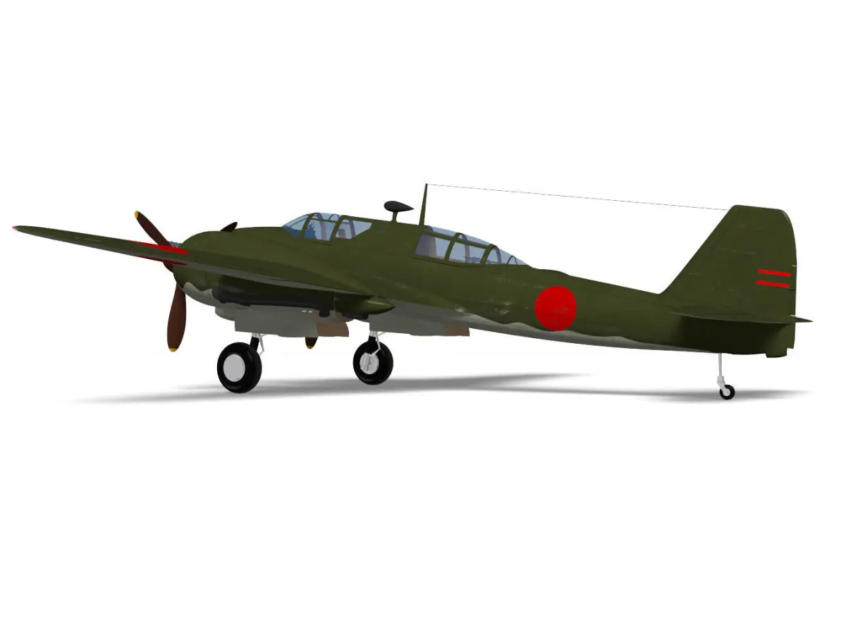It is a twin-engine fighter produced by Kawasaki Aircraft Corporation at the request of the Japanese Army during WW2.The model kou type is a high altitude fighter type with a 37mm machine gun mounted on the nose.The cockpit modeling is simple.The model's landing gear is divided into flight state and landing state parts.