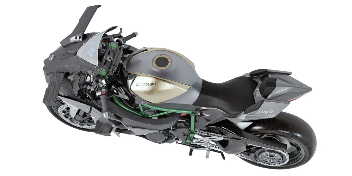 The development of the Ninja H2 R motorcycle goes beyond the boundaries of any other Kawasaki motorcycle. Born through the unprecedented collaboration between multiple divisions within the Kawasaki Heavy Industries, Ltd. (KHI) organization, the world's only limited-production supercharged model represents the unbridled pinnacle of Kawasaki engineering, with astonishing acceleration and mind-bending top speed suitable only for the track.
