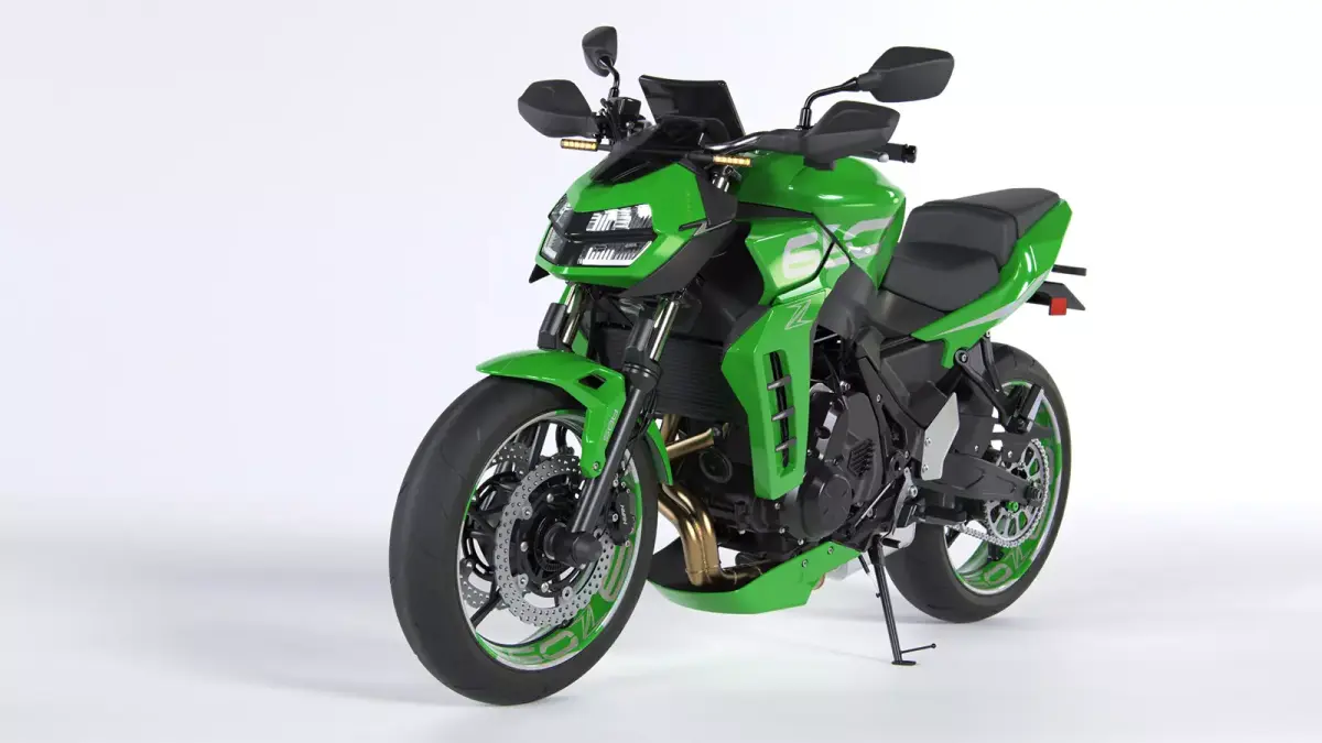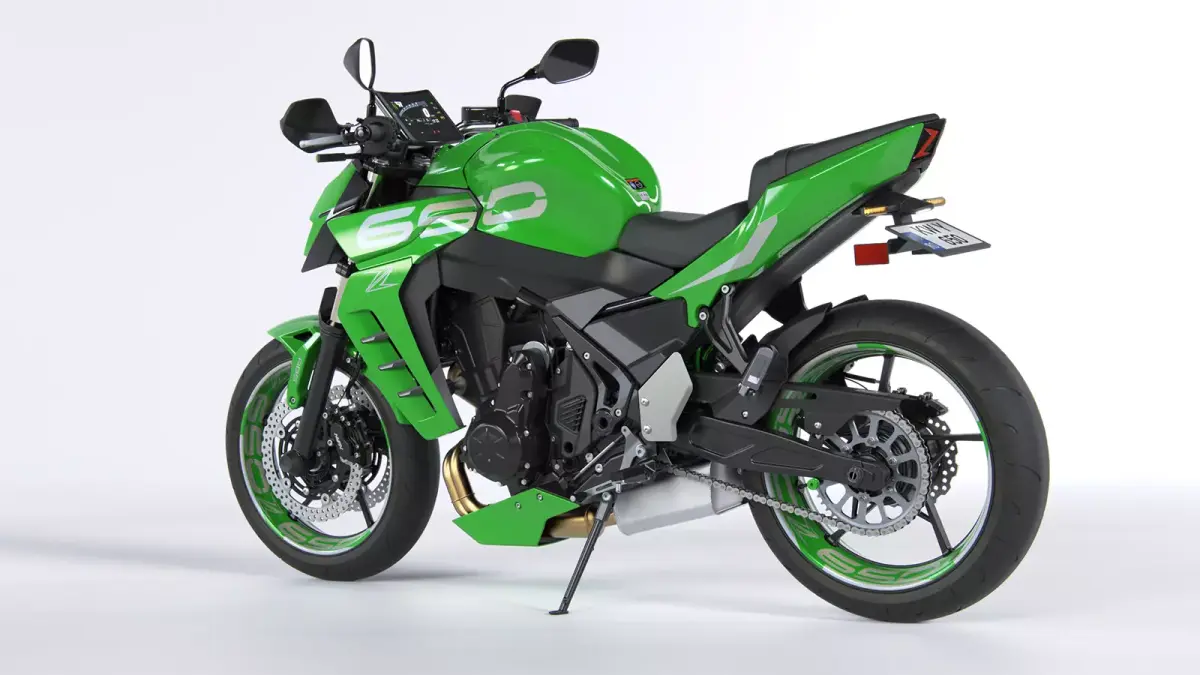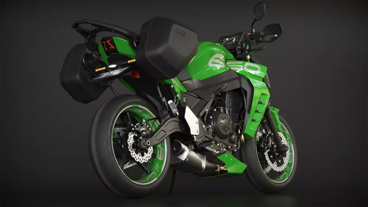 3D model created as closely as possible to the real Kawasaki, based on dimensions from open sources. However, some body panels, headlight, rear light, number plate, control plates, heel guards, and belly pan have been redesigned. All parts of the model are separate objects and grouped (Front End, Fork, Rear End, Swingarm, Body, Panels, etc.). You can easily change all materials.
