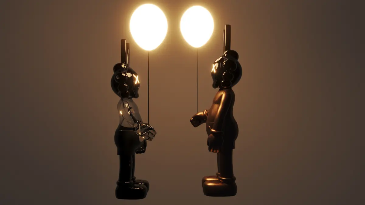 Kaws Standing Floor Lamp. Suitable for art deco, minimalist, modern interior and chic interior design. The materials are already set in the scene.