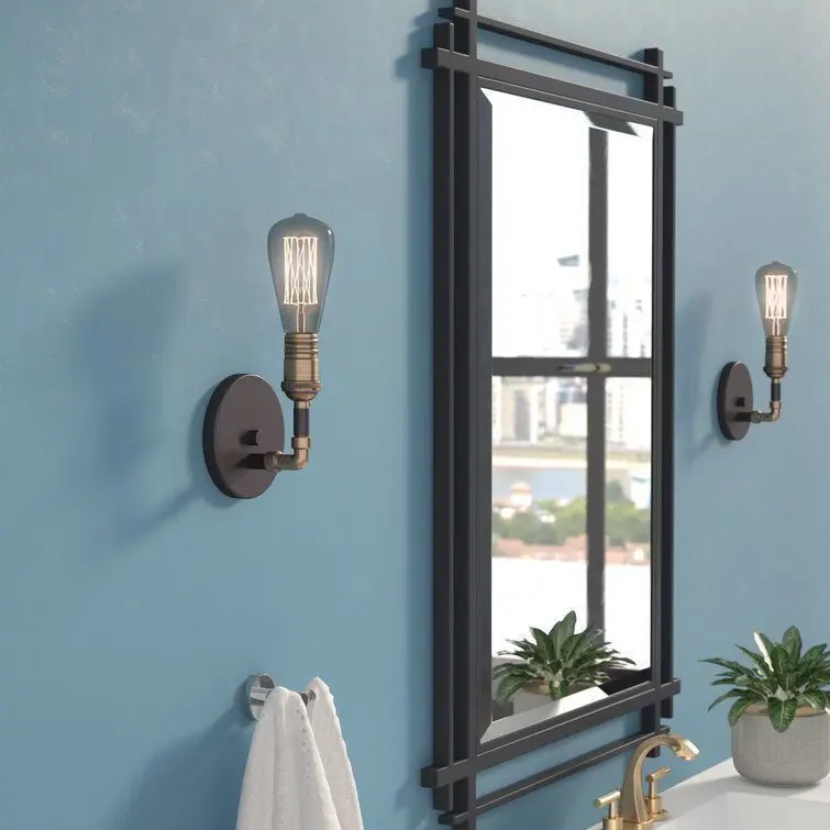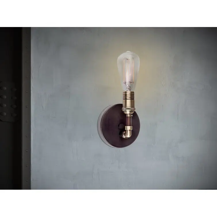 - Utilitarian meets simplicity, exposed lighting is an essential accent in your industrial ensemble. Take this chic wall sconce for example: crafted from steel, it features a circular back plate connected to an angular arm