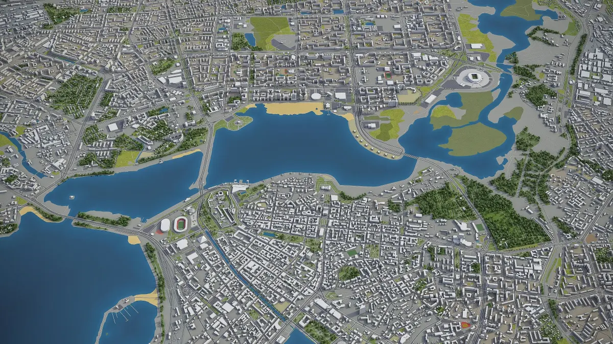 - Full city extents up to 100 x 100 km — or crop to an area of interest for better format compability and scene performance