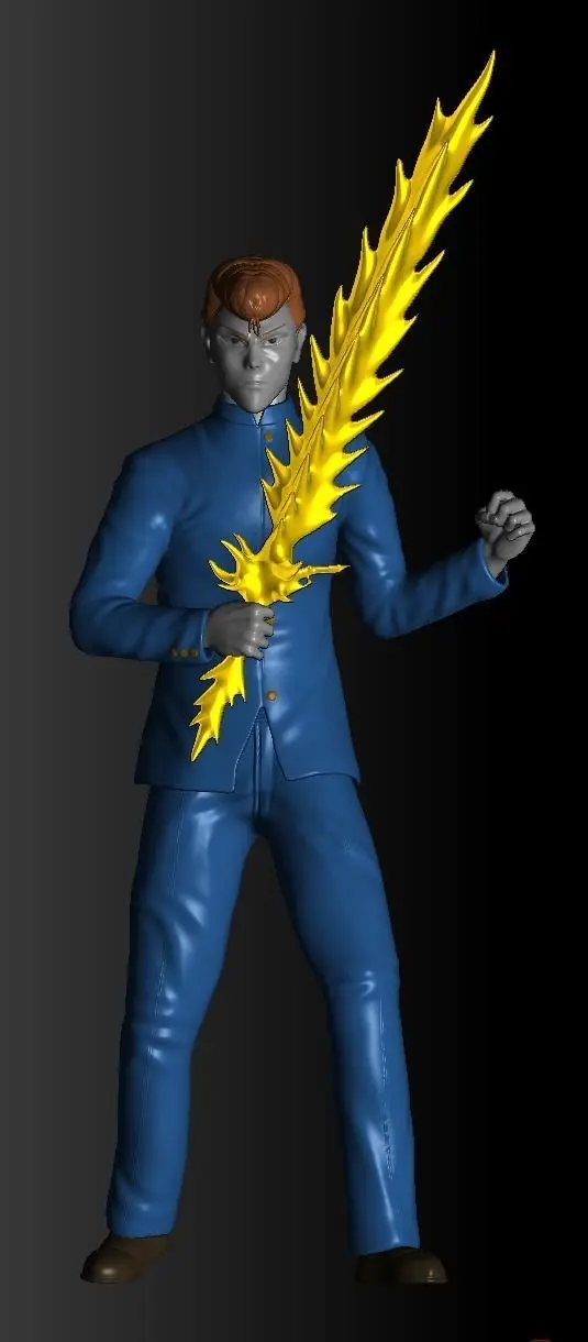 His overall appearance, as well as his dress sense, are likely a homage to the classic Japanese 'bad boy' mythology from the 1950s. While in school, he wears a light blue jumpsuit, in contrast with Yusuke's green one and the dark blue ones worn by rest of the male students in Sarayashiki Junior High.