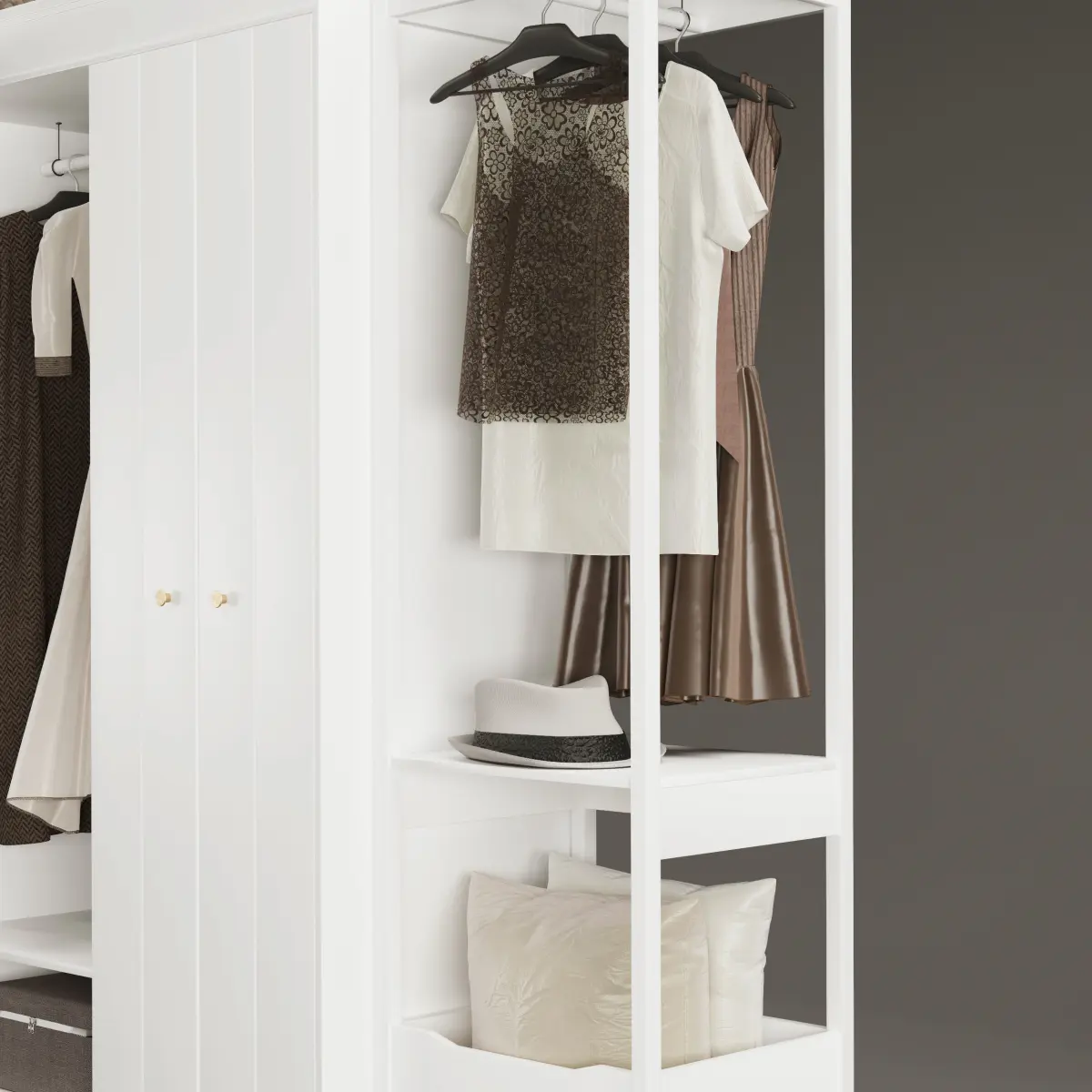 Everything you need to store and organize your belongings at home. The IDANÄS wardrobe with folding doors saves space on the floor, and the open wardrobe can be rotated in two ways. This combination has adjustable storage shelves.Of course, your home must be safe for the whole family. Therefore, the kit includes safety fittings, you can attach the cabinet to the wall.Provides a good overview of the contents and easy access to clothing.Adjustable shelves help you customize the space according to your needs.It is great for folded clothes, and for long and short items on hangers.