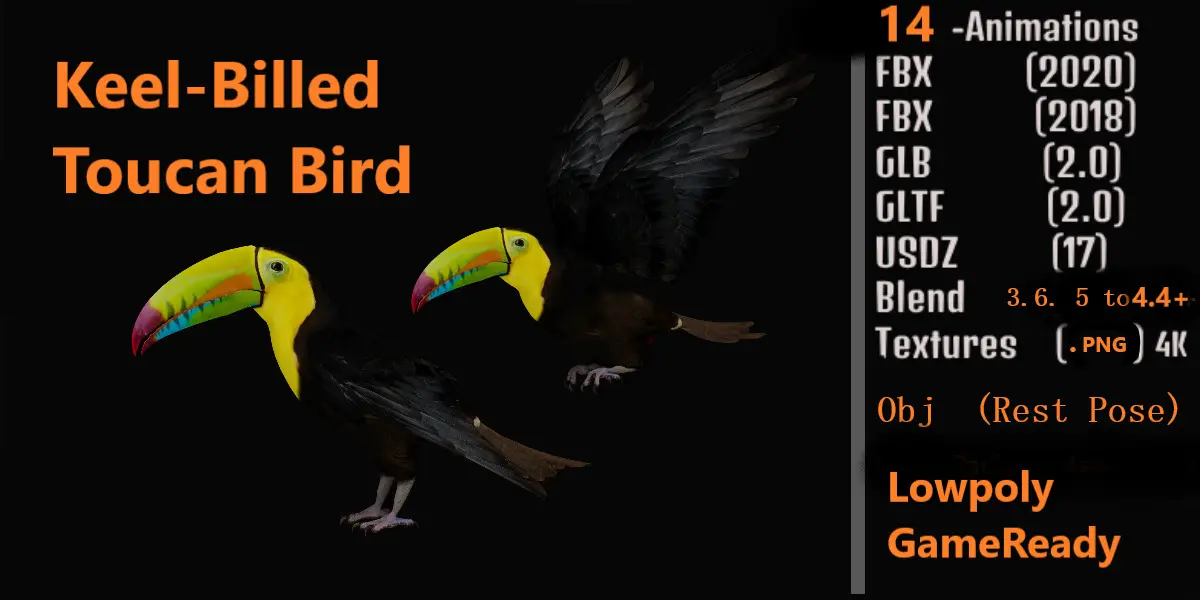 The keel-billed toucan, also known as sulfur-breasted toucan, keel toucan, or rainbow-billed toucan, is a colorful Latin American member of the toucan family. It is the national bird of Belize. The species is found in tropical jungles from southern Mexico to Ecuador.. 3D Keel-Billed Toucan Bird Animal Model By Nyilonelycompany (nyc).