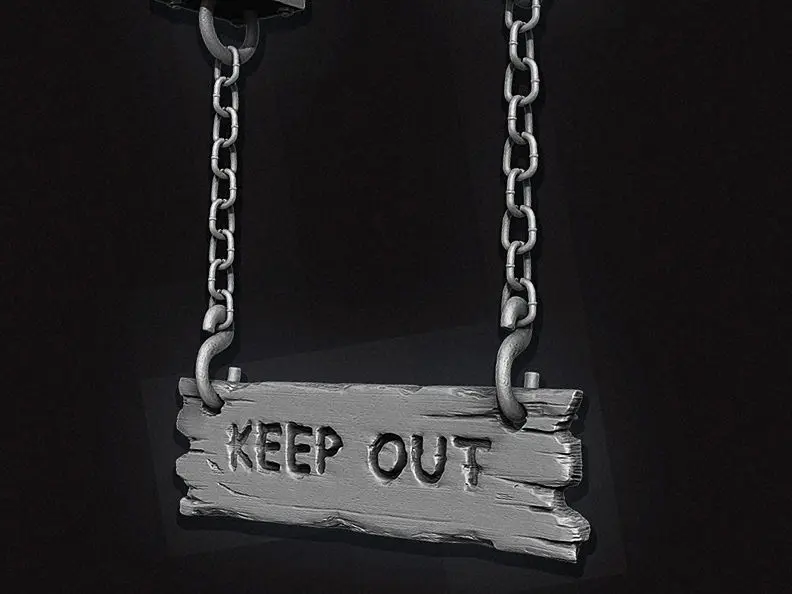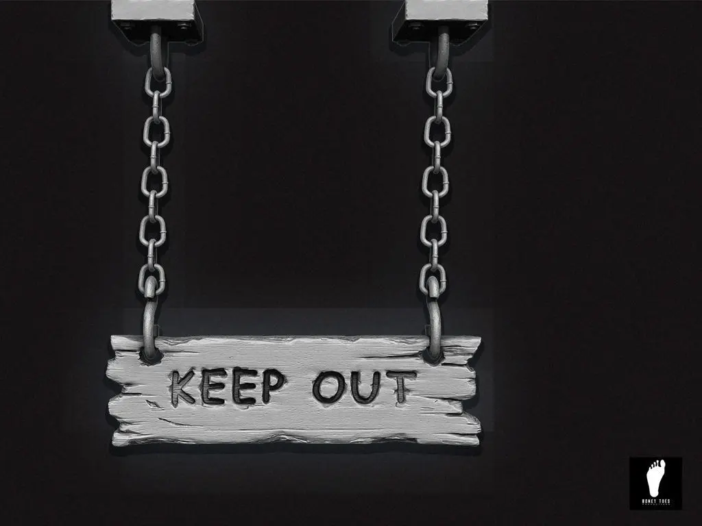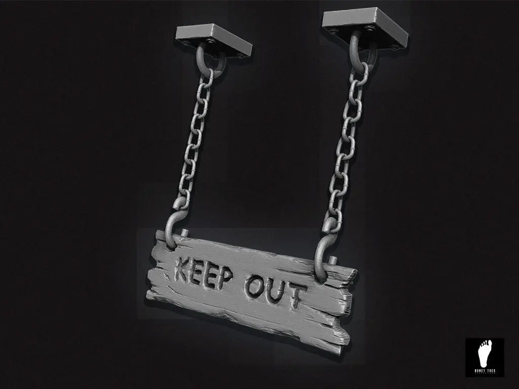3D Highly Detailed Zbrush Sculpt of Hanging 'Keep Out' Sign!