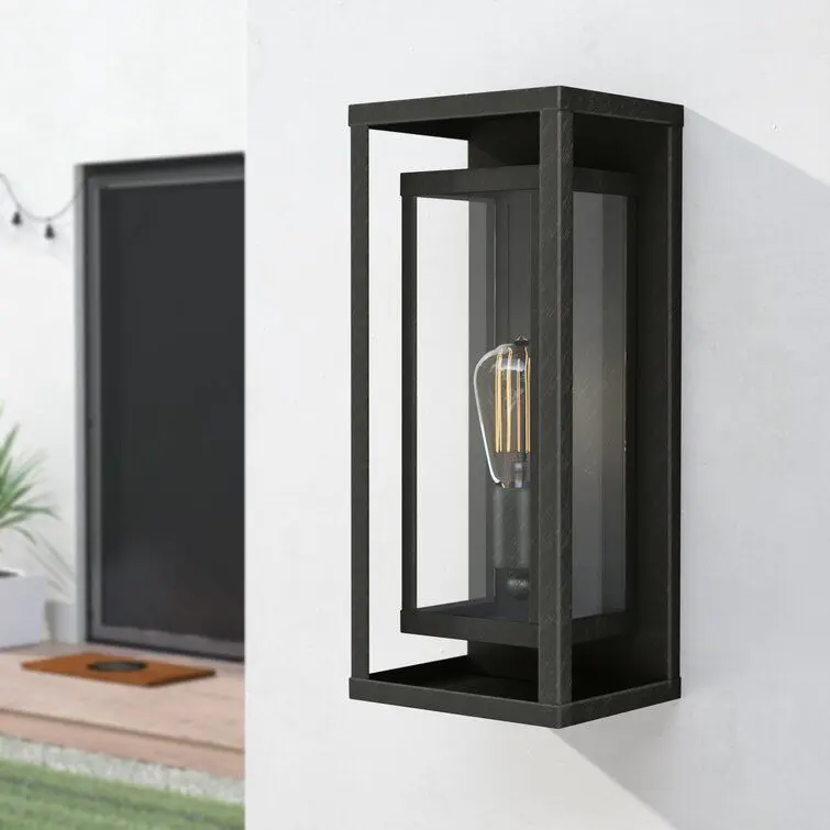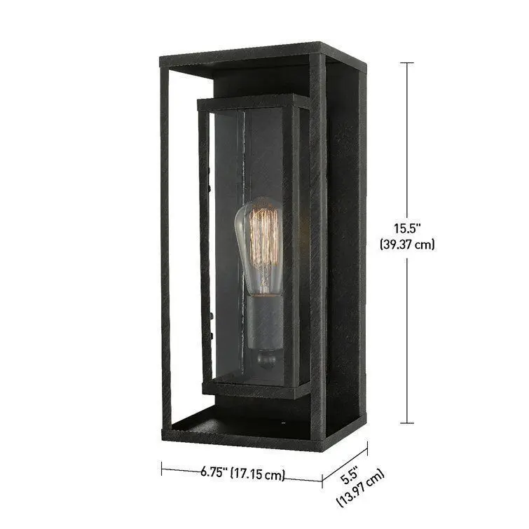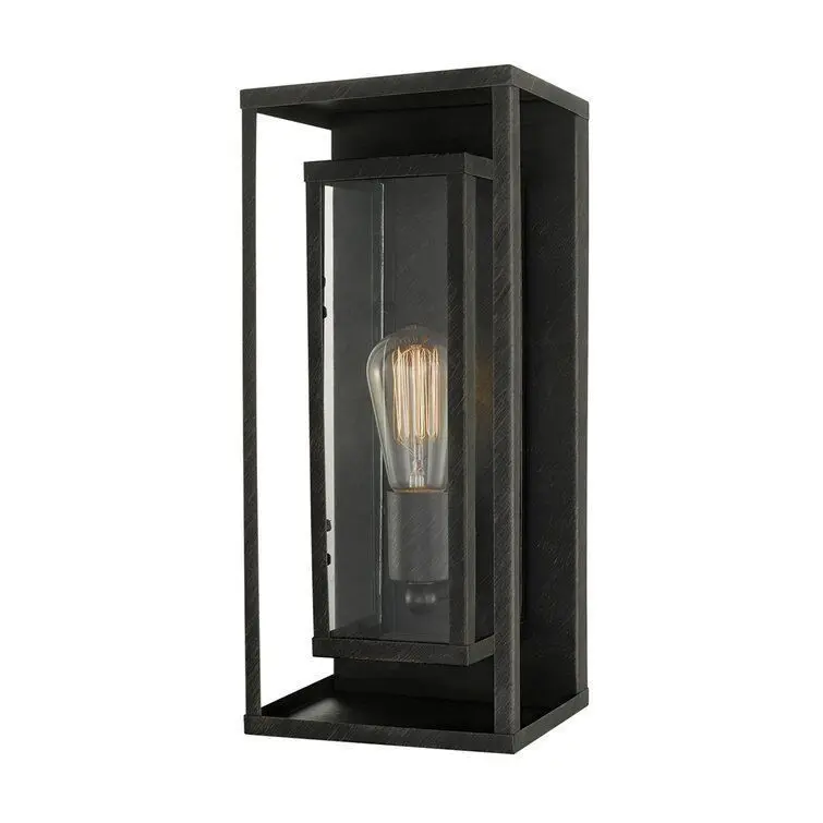 - Upscale your outdoor space with the beautifully designed Outdoor Wall Sconce. Combining a double rectangle façade with a datk bronze finish, this sconce has created a wonderfully rustic piece to complement any outside living décor. With a lovely clear glass inner shade and no outer glass, you can illuminate your entranceway easily and brightly. Change the look of the wall sconce and make it uniquely your own by adding a different bulb.
