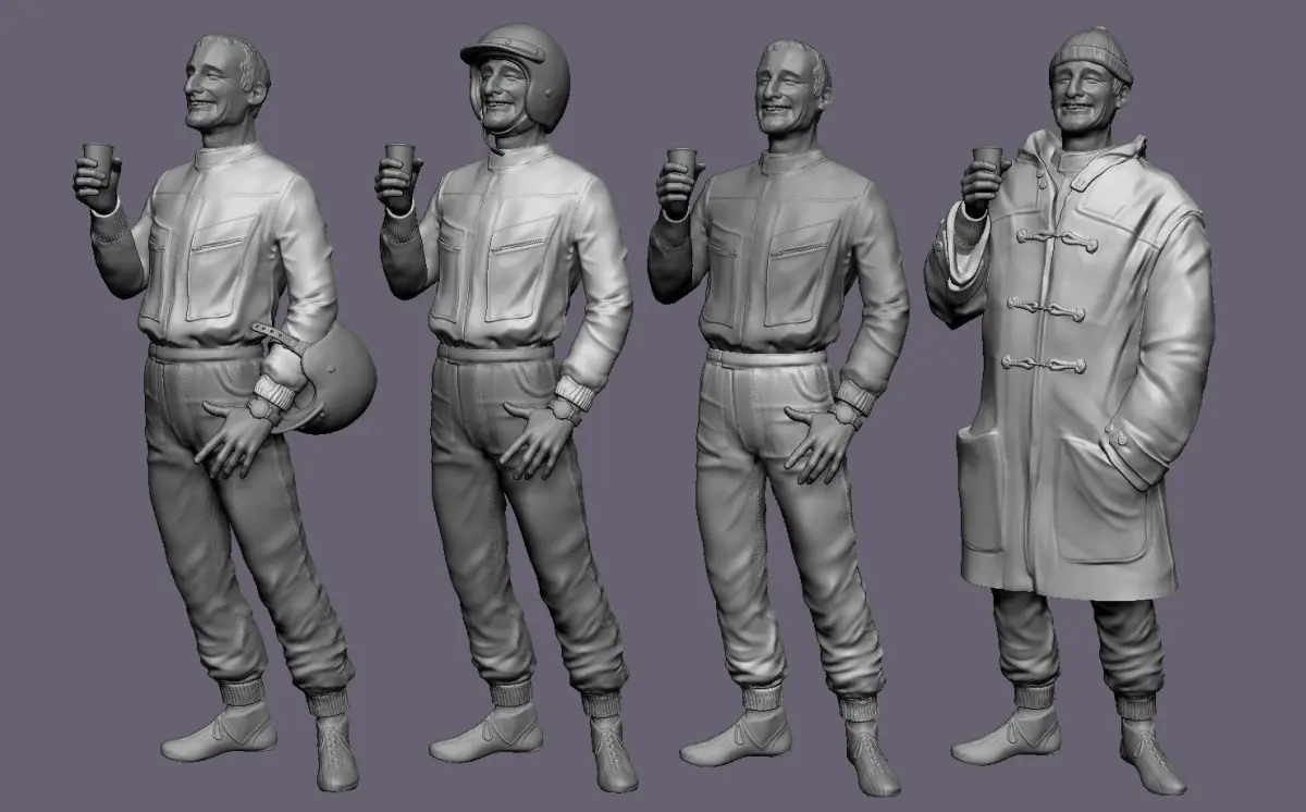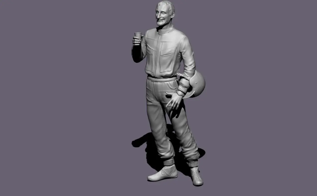 Ken Miles. Zbrush model to print with several options. Must be re-sized. Not for comercial use. Ask me first.