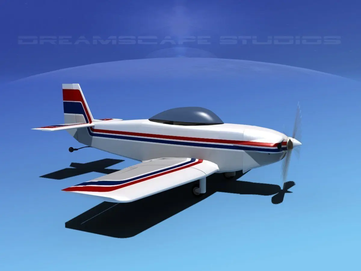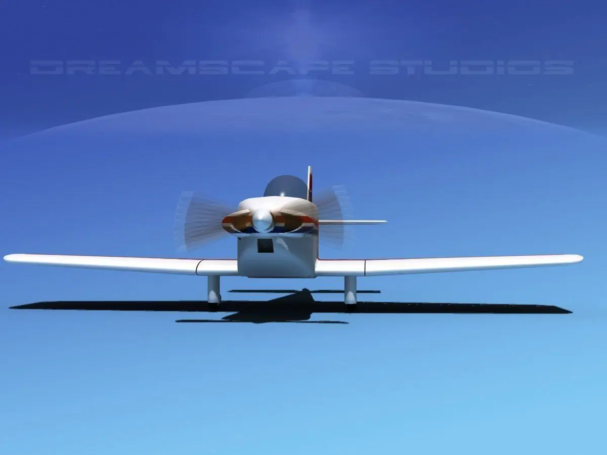 This model is built near to scale, textured and includes animateable control surfaces and retractable landing gear. The propeller is animated. The canopy can be opened to reveal the instrument panel and seat arrangement and controls. The landing gear (main only) can be retracted into the wing in recessed bays. This model is available in several formats and several paint schemes.