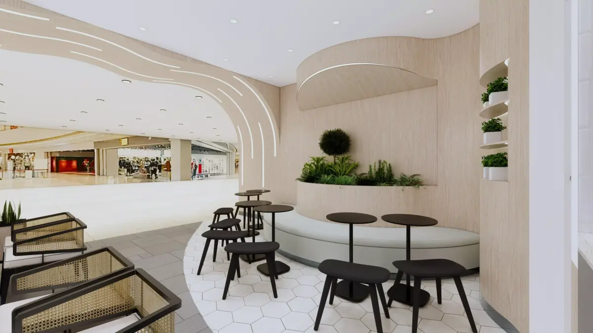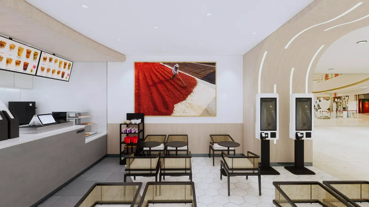 Design Features:Authentic Brand Identity: Accurately modeled Kenangan signage, menu displays, and the signature Deep Slate & Copper color scheme.