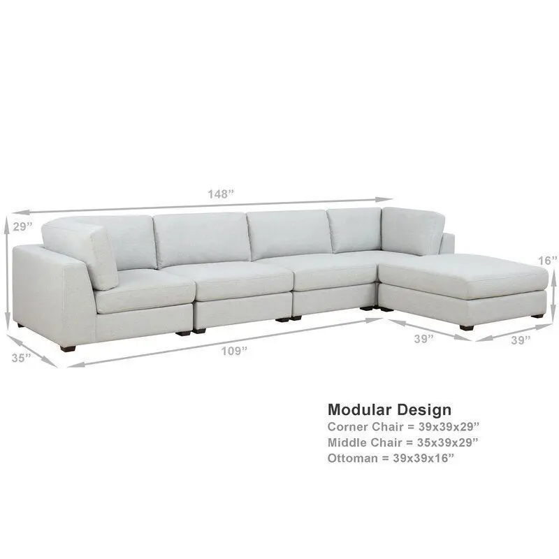 - 5-Piece includes comprise of 2 corner chair, 2 middle chair, 1 ottoman