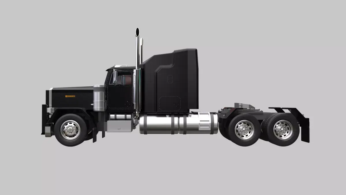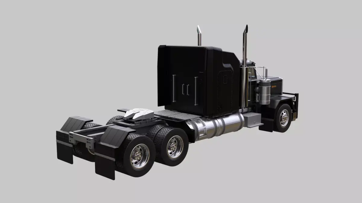 This is a rigged Peterbilt truck model, composed of 43 separate pieces parented to a spline. The model is prepared for animation and is ready to be rendered in Arnold.