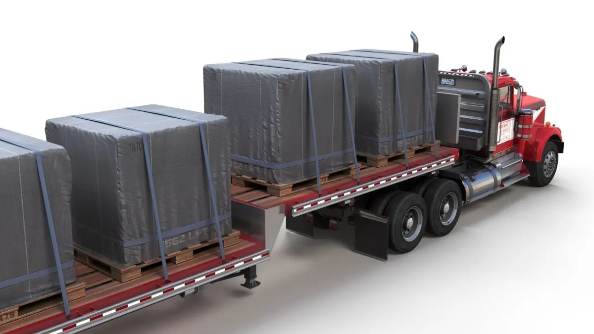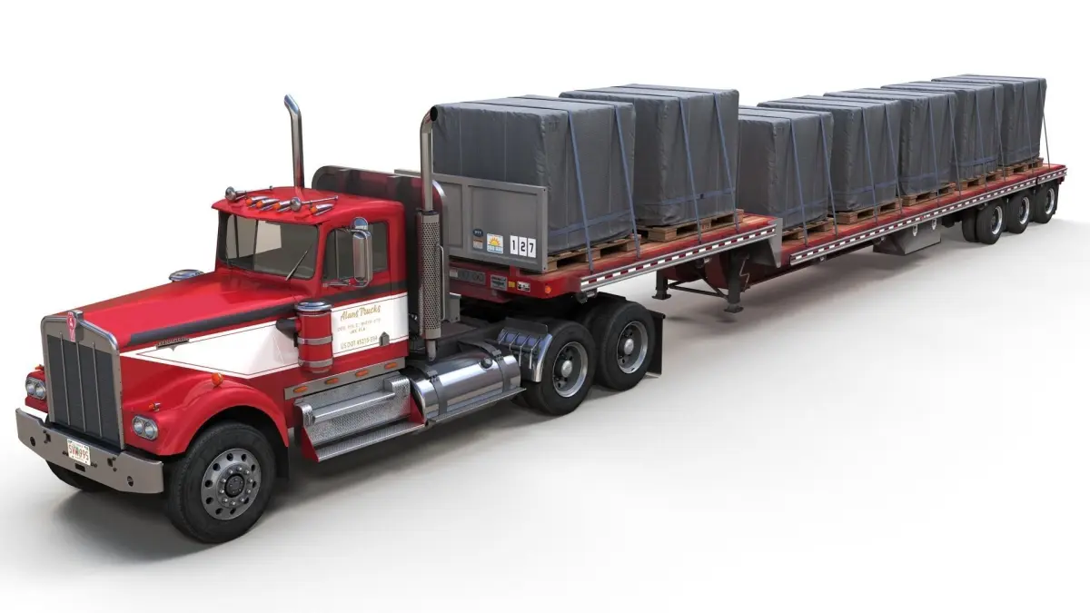 High detailed dropdeck trailer with cargo.