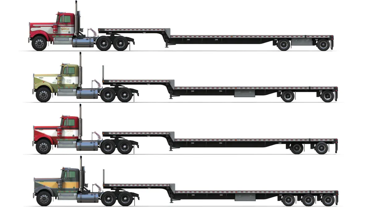 Different wheels for rig and trailer.