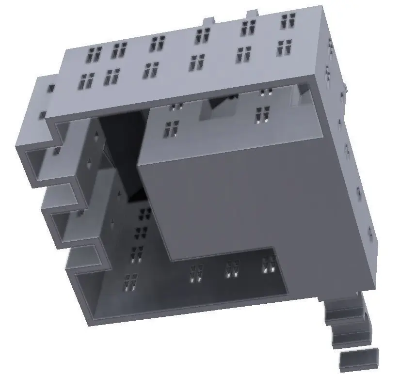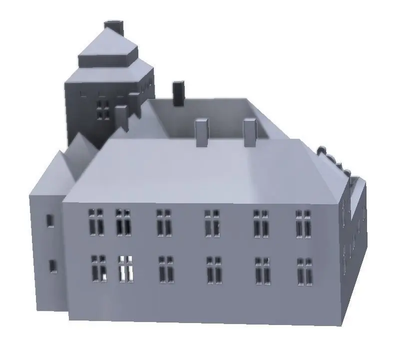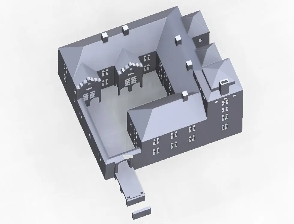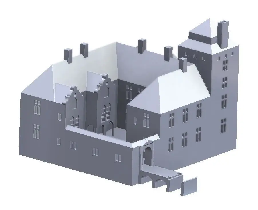 This model building is a reconstruction of Kesselhof in the 1772 condition. A light can be place underneath to light up the windows after 3D-printing.