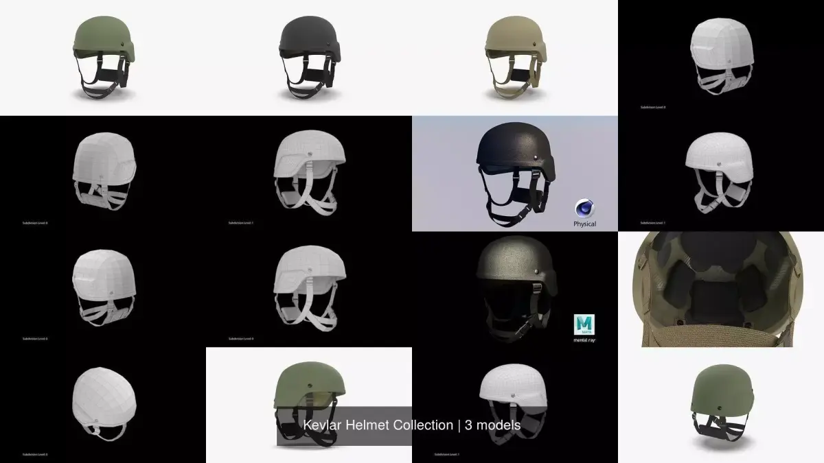 This Kevlar Helmet Collection is a high quality, photo real collection that will enhance detail and realism to any of your rendering projects. The models has a fully textured, detailed design that allows for close-up renders, and was originally modeled in 3ds Max 2014 and rendered with V-Ray. Signature image scene doesn't included. All models in this collection lays in separate scenes