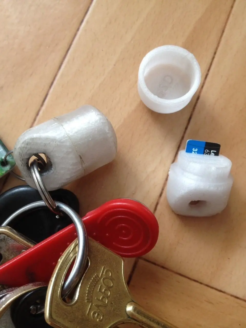 Case for storing three uSD cards in the form of a keychain. Your music, fotos, data files will always be with you. The case is in two parts. The cover is fixed with a bayonet connection.Diameter - 20 mmHeight - 30.55 mm/