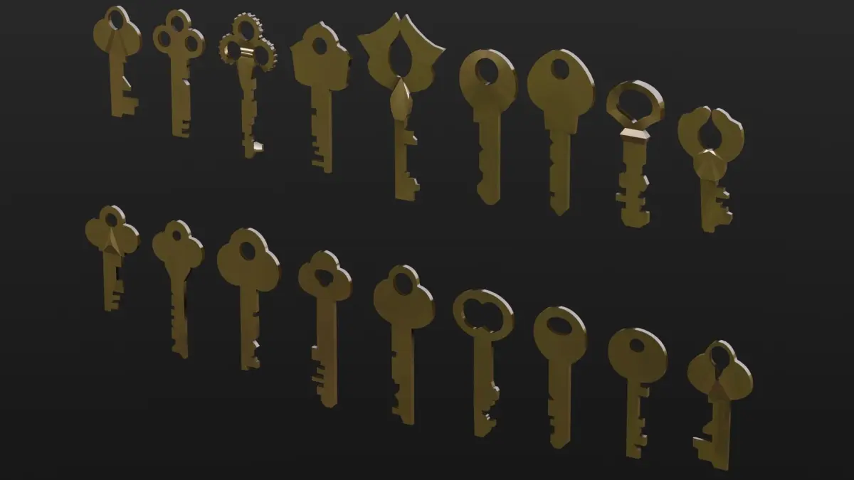 Media Type:Digital Asset: The Keys Pack is offered as a digital 3D model, making it easily adaptable for integration into various digital platforms and environments.Geometry:Composition: The geometry of the model is a sophisticated combination of quads and triangles. This mixture ensures a detailed and efficient structure that balances visual fidelity with rendering performance.Polygons: The model features a total of 9,282 polygons, providing a high level of detail that captures the intricacies of each key's design and structure.Vertices: There are 7,248 vertices in the model, supporting the detailed shapes and features of the wooden keys and contributing to their realistic appearance.Textures and Materials:Textures: High-resolution textures are applied to enhance the visual detail and realism of the wooden keys. These textures simulate the natural wood grain, wear, and aging effects, adding depth and authenticity to the model.Materials: A variety of materials have been utilized to define the surface properties of the keys. This includes different wood finishes and potential decorative elements, ensuring each key has a distinct and realistic appearance.Rigging and Animation:Rigged: The model is not rigged, indicating it lacks an internal skeleton for movement or posing. It is designed as a static asset, suitable for visual representation rather than dynamic interaction.Animated: No pre-defined animations are included with this model. The keys are intended to be static objects, ideal for scenarios where animation is not required.UV Mapping:UV Mapped: UV mapping techniques have been employed to ensure accurate application of textures to the model's geometry. This process enhances the model’s appearance by precisely aligning the textures with the 3D surfaces of the keys.Uses:The Wooden Keys Pack 3D model is highly versatile and can be employed in a range of professional applications, including: