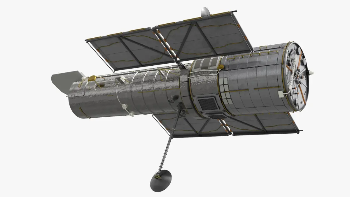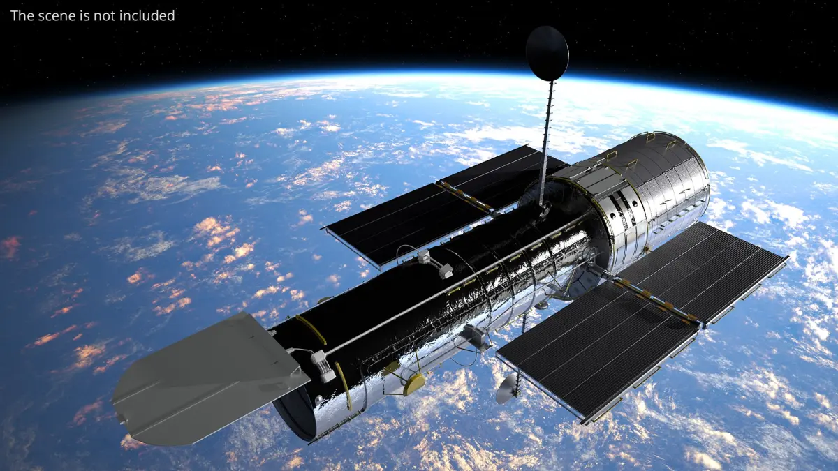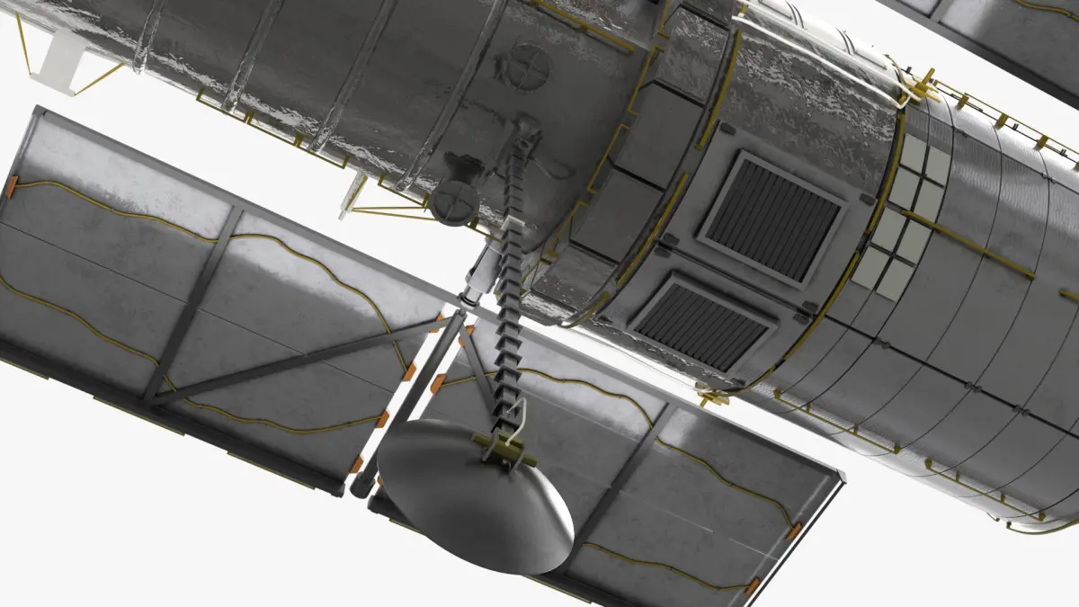 This detailed model showcases the telescope's cylindrical body, solar panels, and antennas, reflecting its precise design for astronomical observations. It's equipped with advanced optics and instruments, enabling it to study celestial phenomena across ultraviolet, visible, and near-infrared spectra.