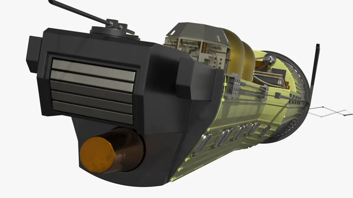 KH-9 Hexagon Cold War Spy Satellite is a 3d model of a sophisticated satellite designed for space exploration and observation.