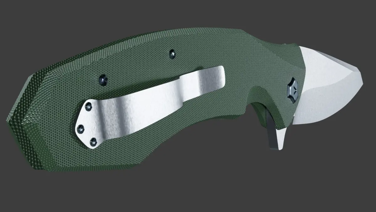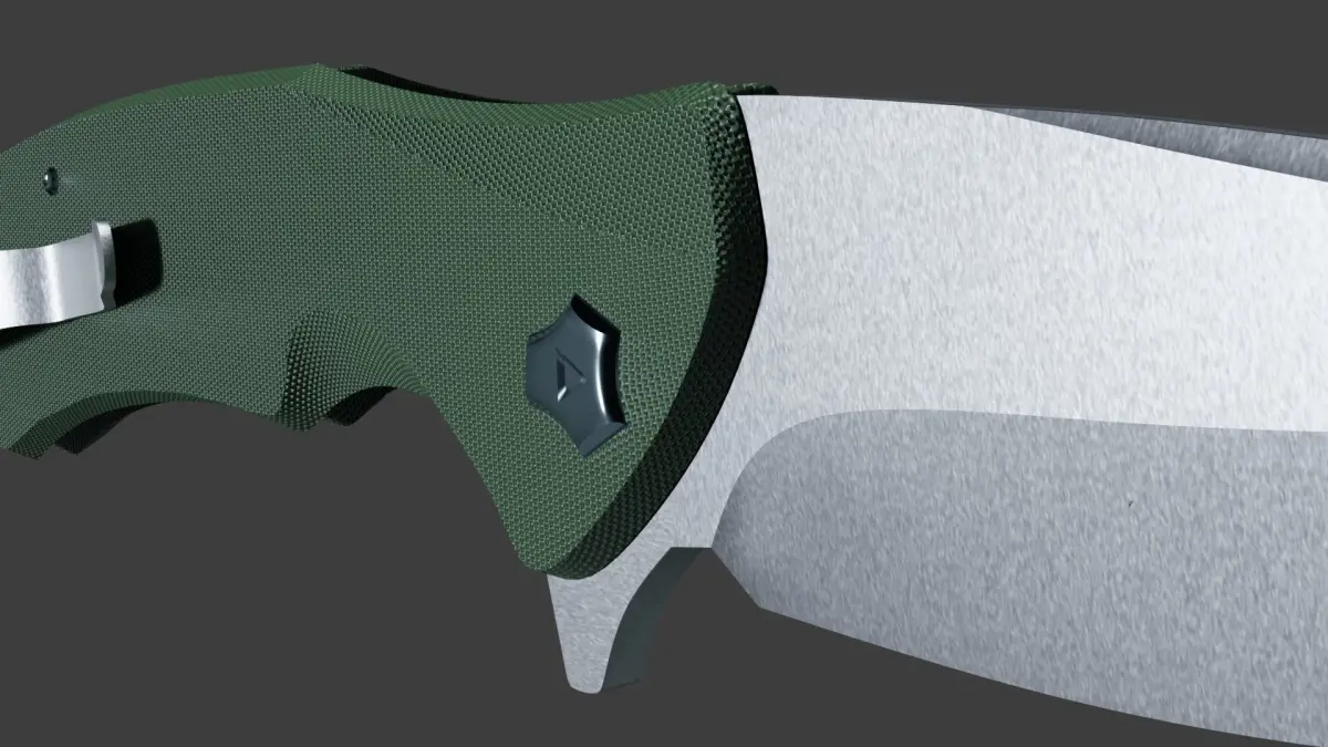 A khaki folding knife made by me in the Blender program.It seems to me that I did well for the first model of the knife)