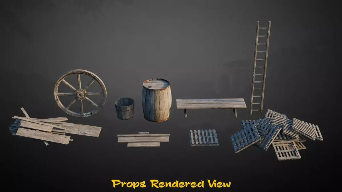 12 High-Detail Environment Props:A curated set of outpost clutter, including wooden supports, stone barriers, crates, and debris to add life and story to your scene.